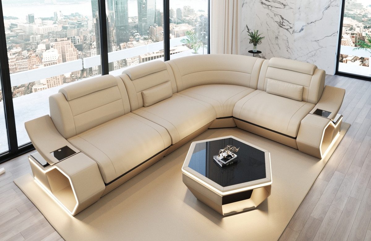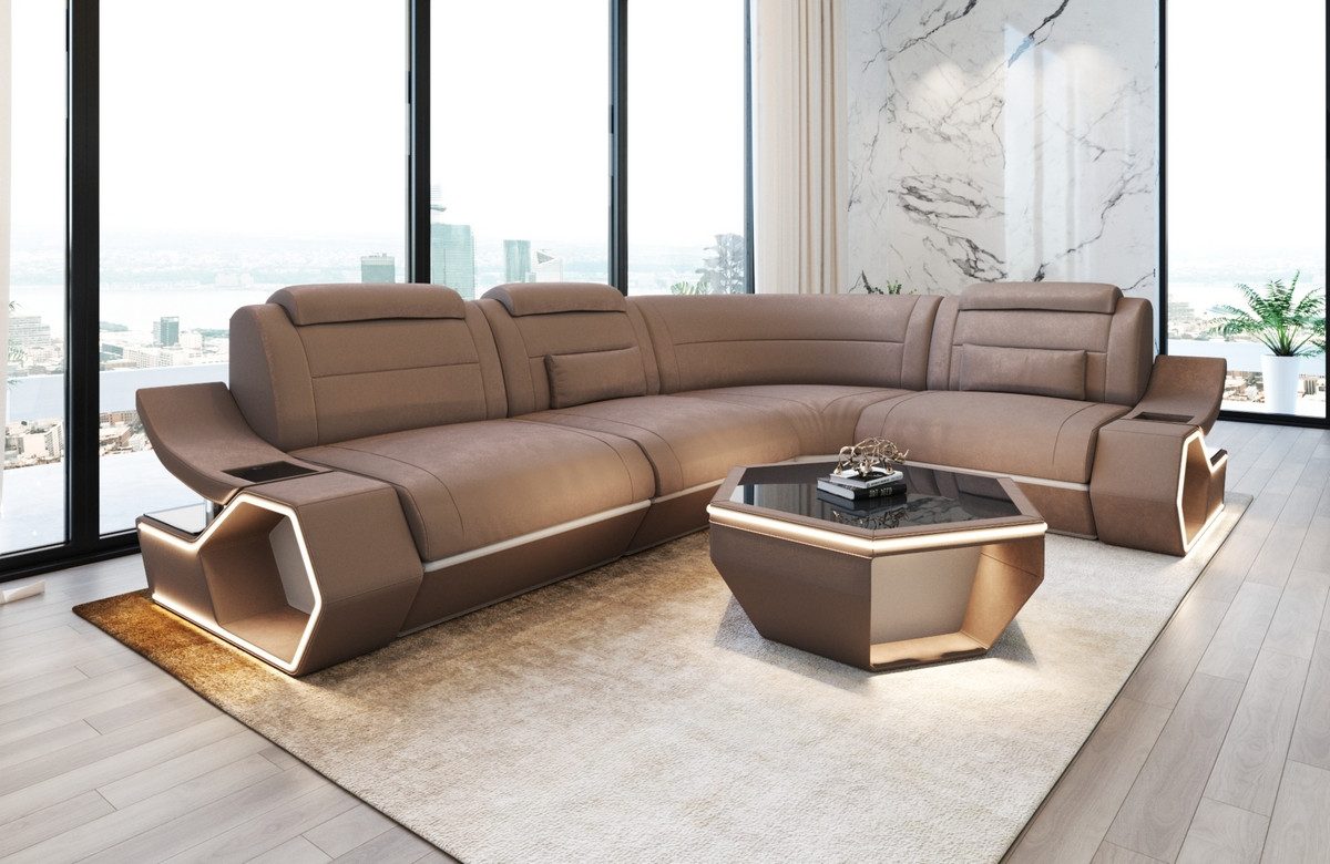 Modern, komfortabel und individuell: Das Polster Ecksofa Pescara in eleganter L-Form kombiniert futuristisches Design mit wohnlichem Polsterkomfort. Die Kombination aus Zweisitzer, Eckteil und Einzelsitz bietet reichlich Platz für entspannte Momente – solo oder mit Gästen.