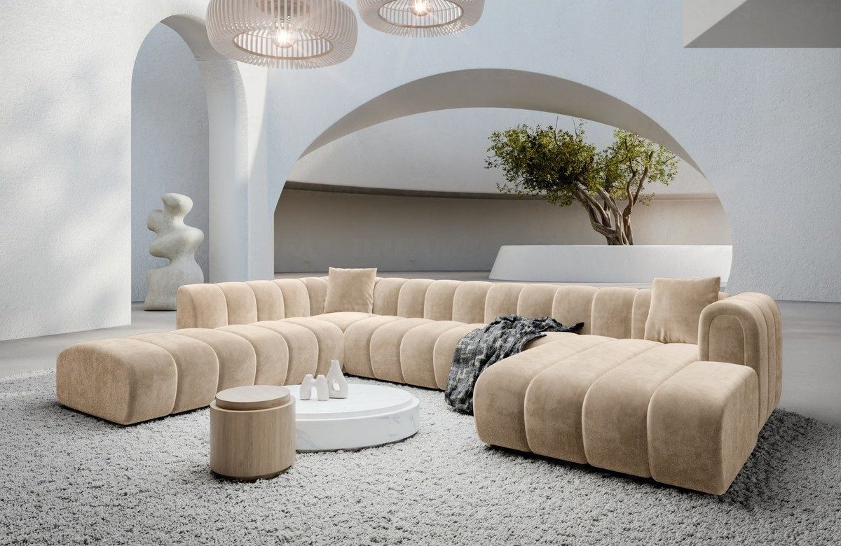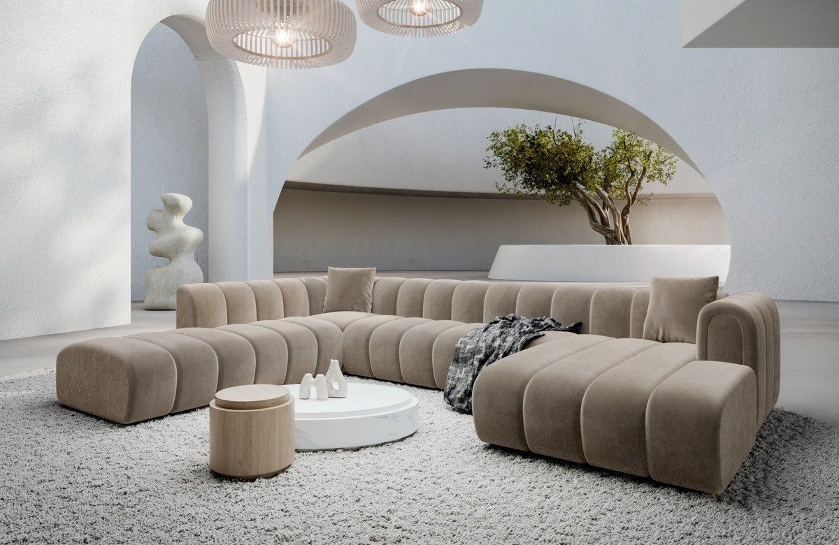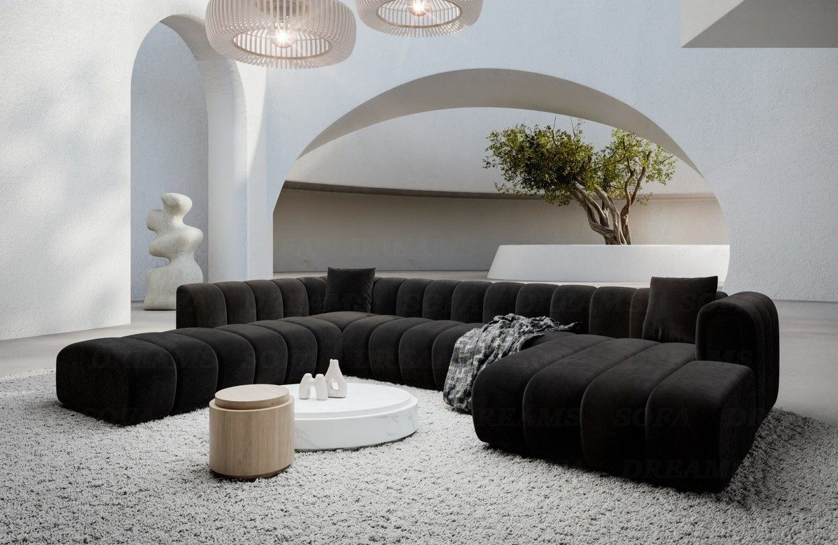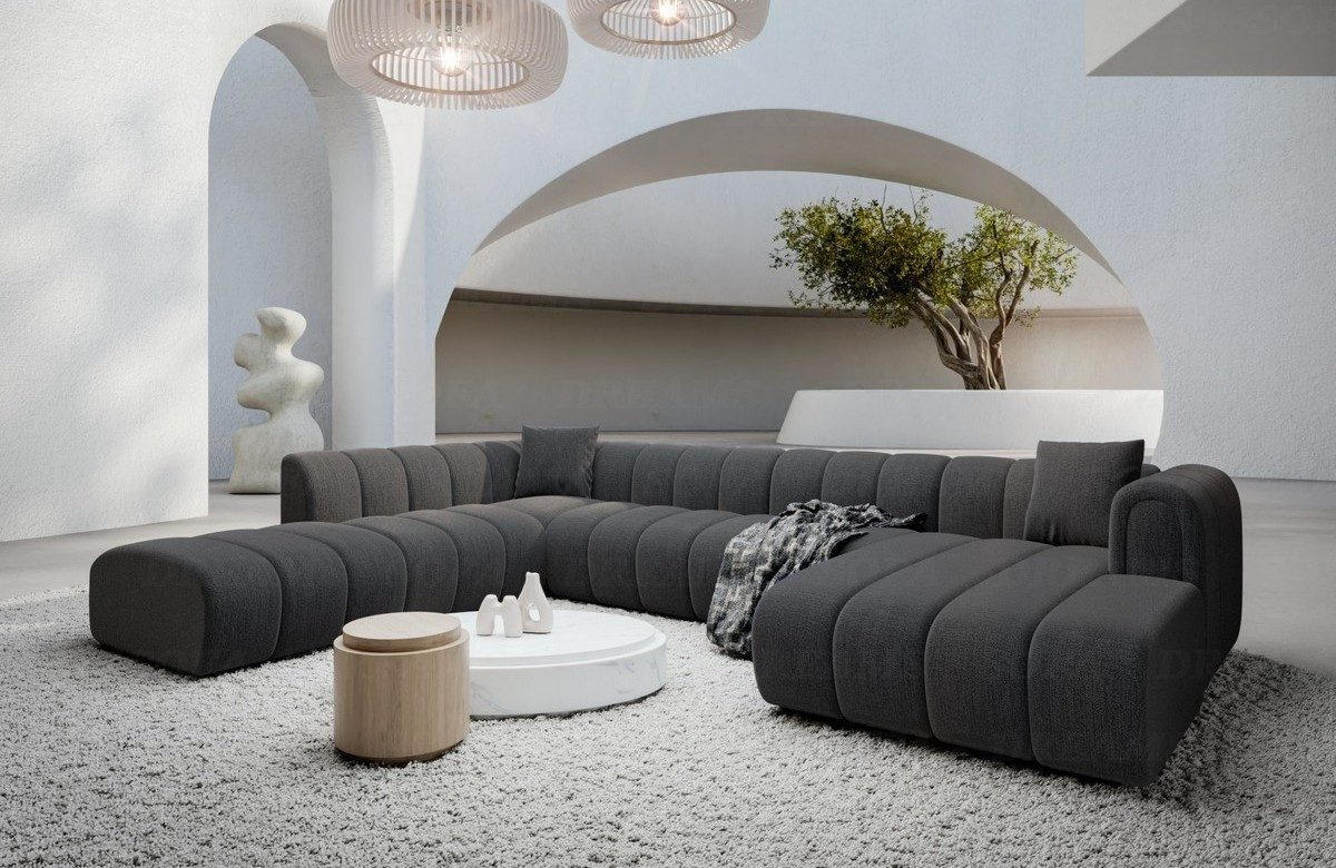 1× Wohnlandschaft Almagro XXL mit frei wählbarer Ottomane (links/rechts) sowie 2× Zierkissen.