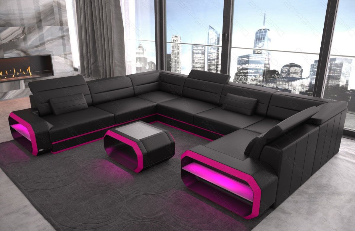 Mit der integrierten LED-Beleuchtung schafft die Wohnlandschaft Verona eine angenehme und stimmungsvolle Atmosphäre. USB-Anschlüsse ermöglichen es Ihnen, Ihre elektronischen Geräte bequem aufzuladen. Verstellbare Kopfstützen sorgen für optimalen Komfort und Unterstützung Ihres Nackens, egal ob Sie entspannen oder Gäste empfangen.