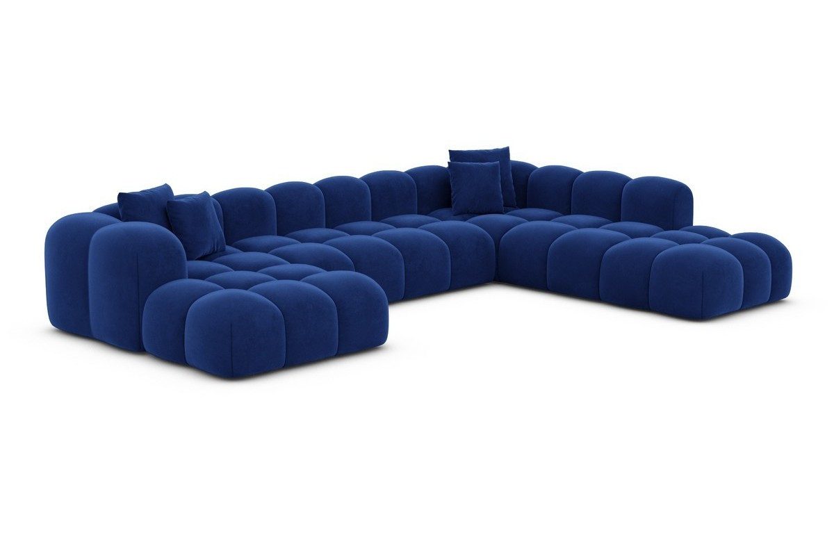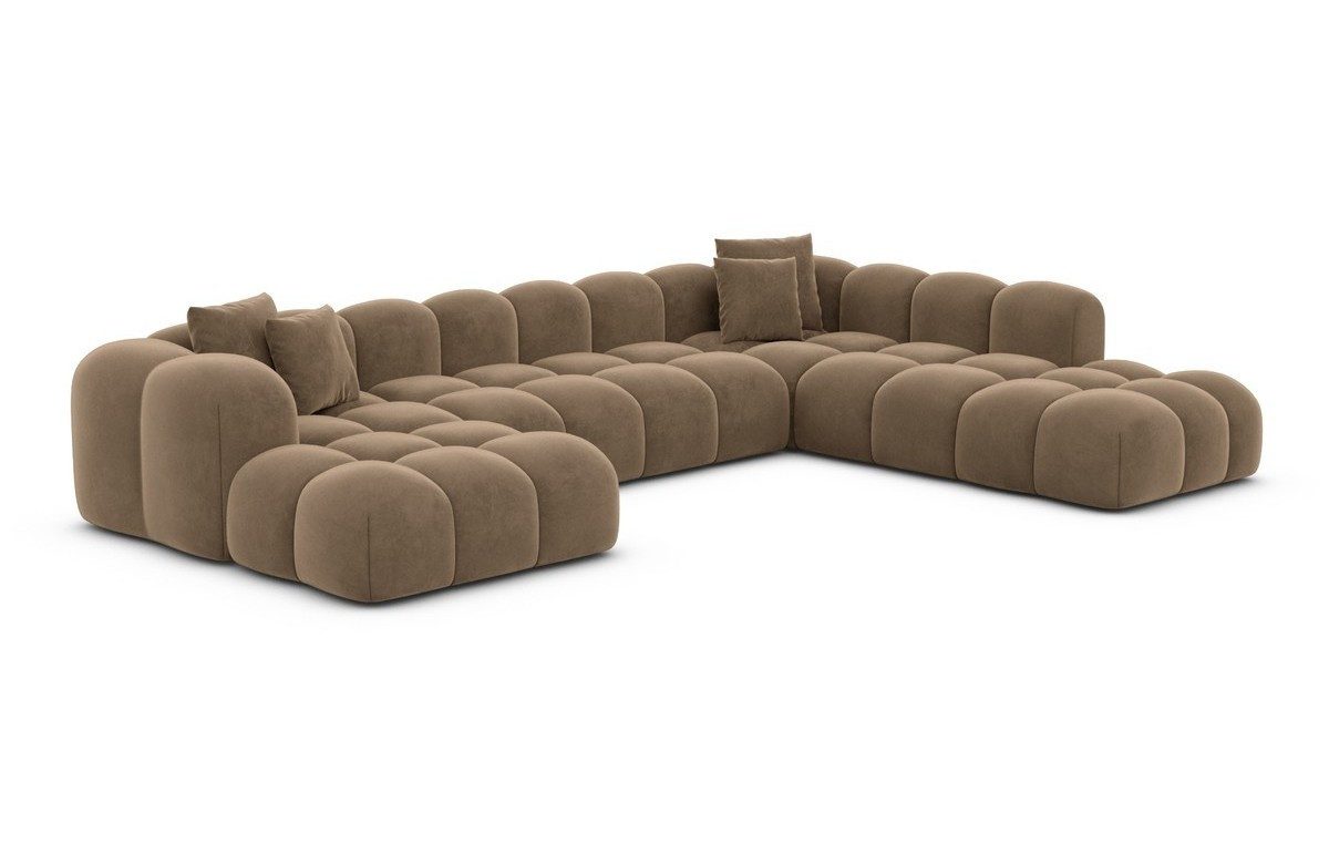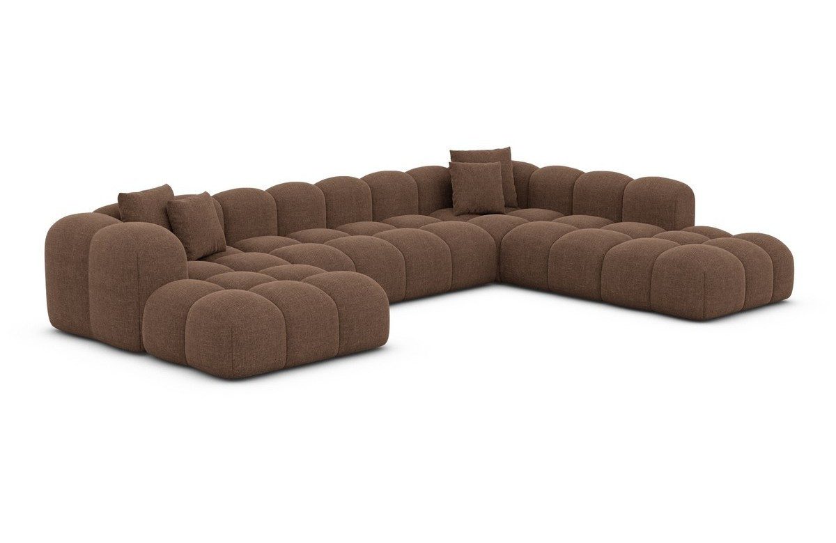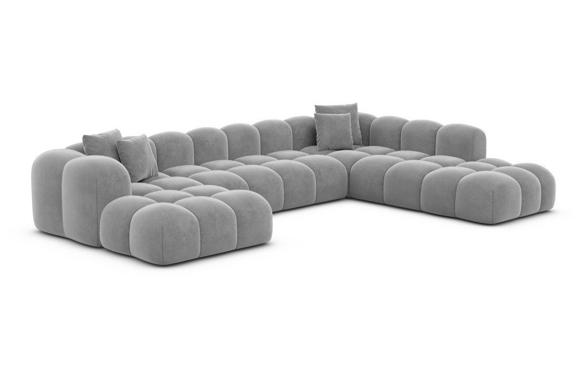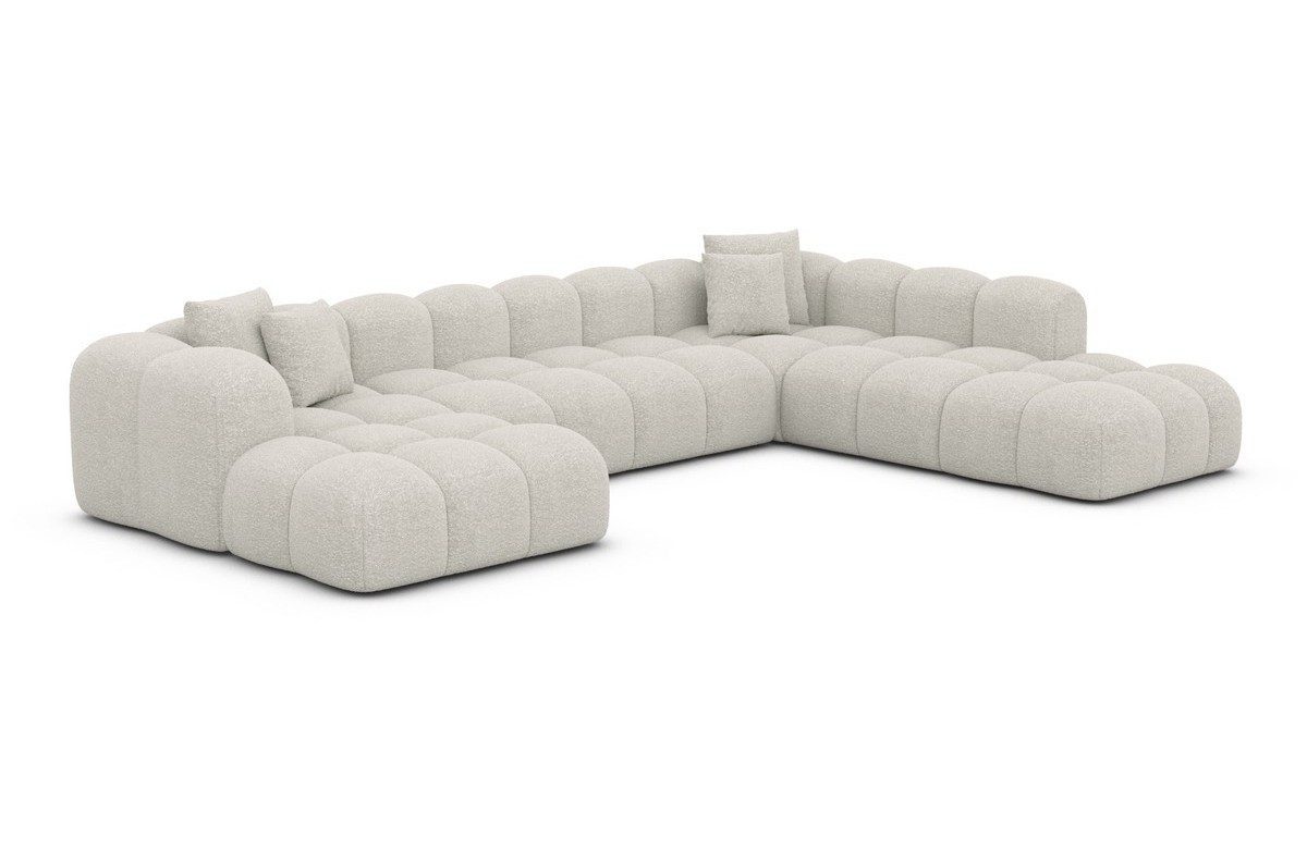 Die Stoff Wohnlandschaft Formentera XXL vereint modernes Design mit luxuriösem Komfort und bietet Platz für bis zu sechs Personen. Dieses beeindruckende Polstersofa ist in drei hochwertigen Stoffbezügen erhältlich: luxuriöser Boucléstoff, robuster Strukturstoff und edler Samtstoff. Jeder Bezug verleiht Ihrem Wohnbereich eine besondere Note und überzeugt durch seine hohe Qualität und Langlebigkeit.