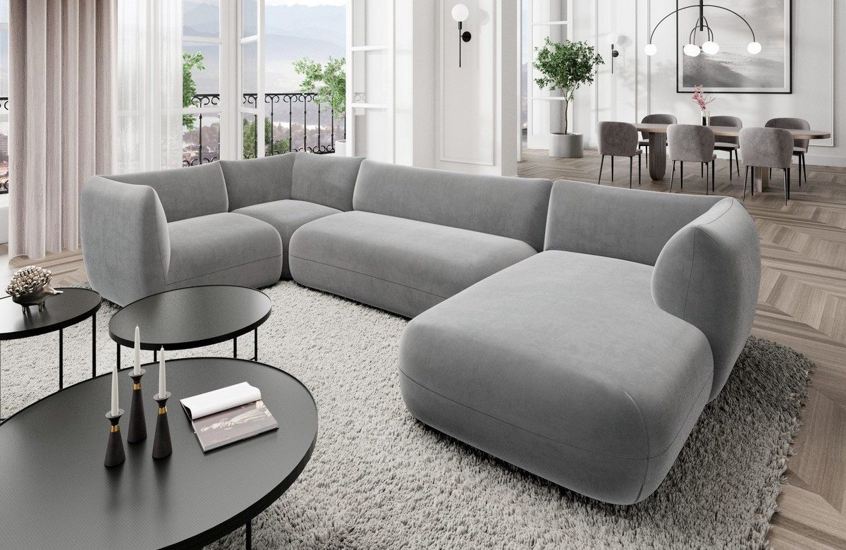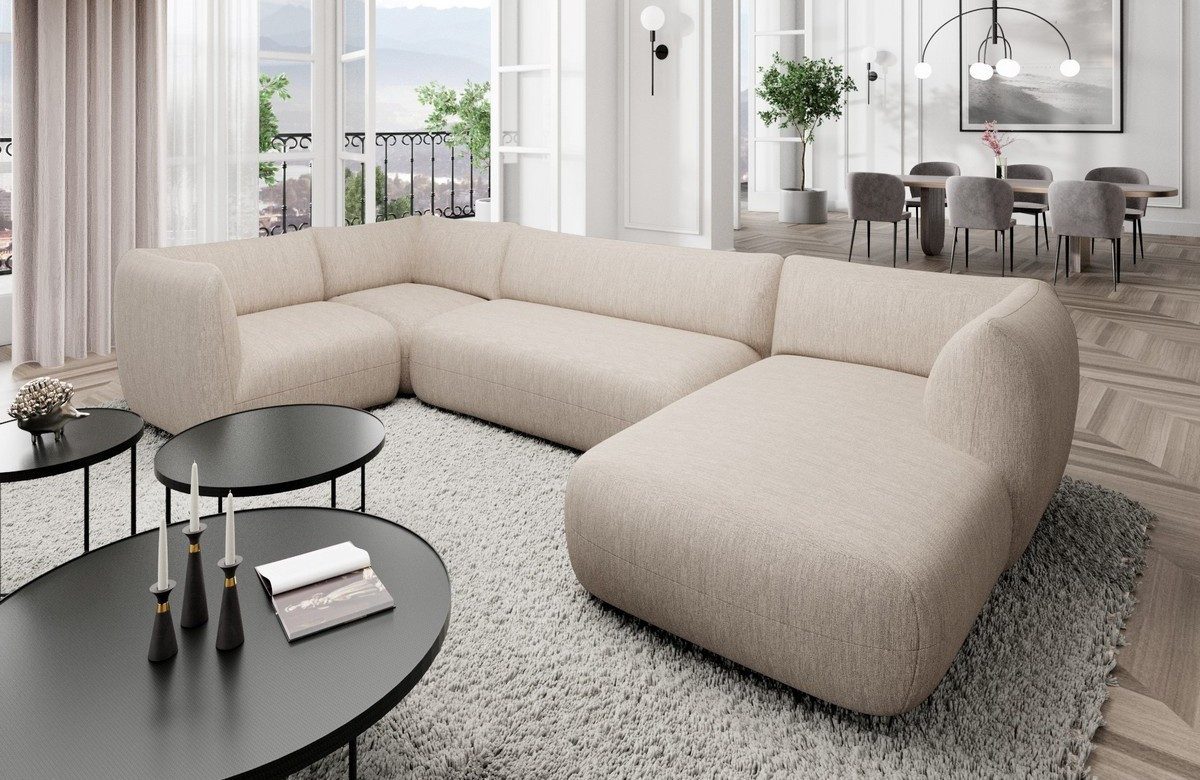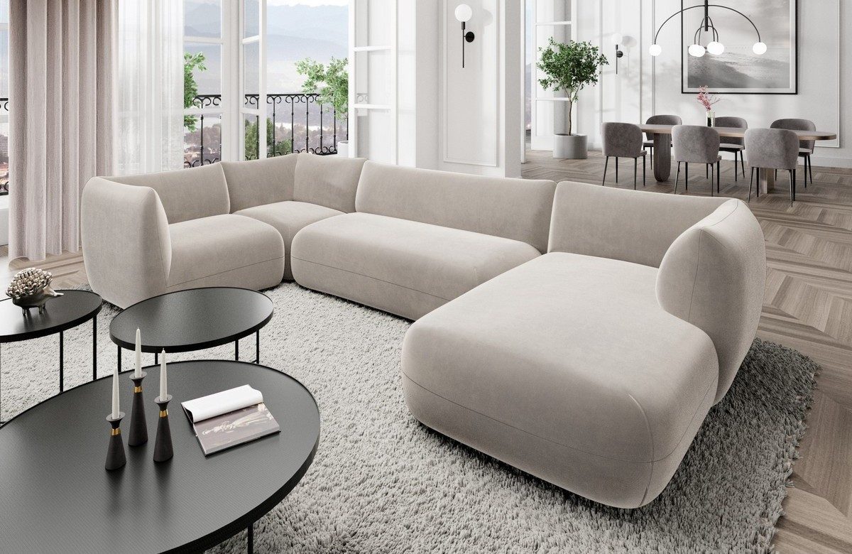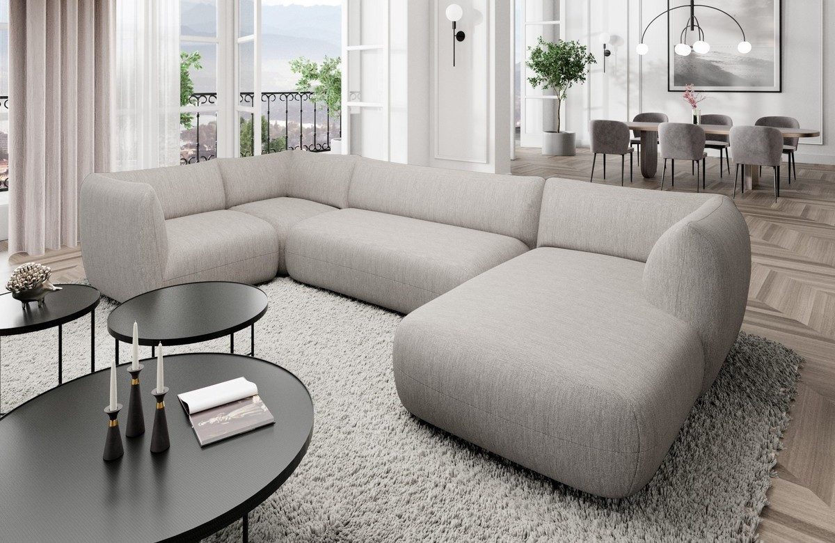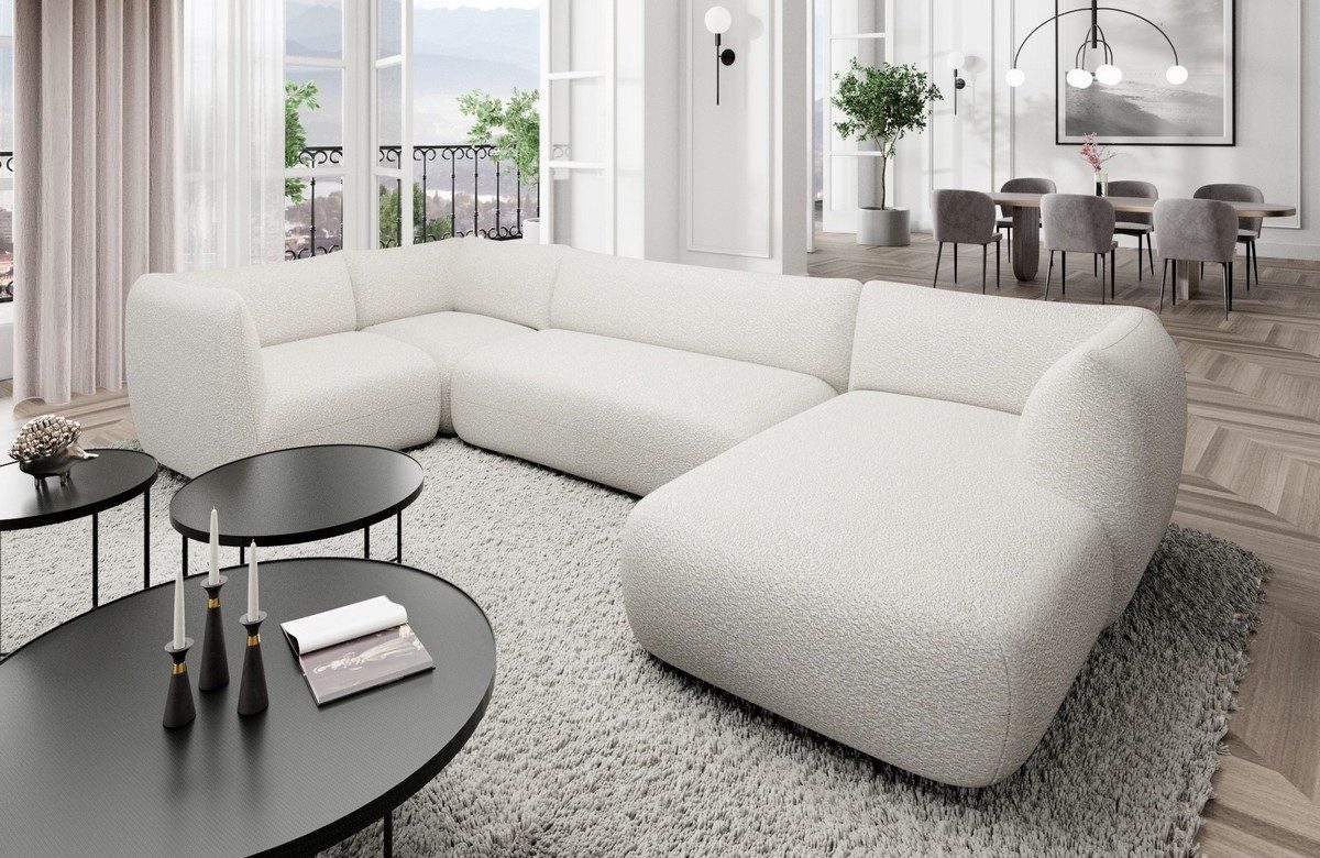 Die Polster Wohnlandschaft Madrid in U-Form bringt Eleganz und Komfort in Ihr Wohnzimmer. Dieses großzügige Sofa ist in drei luxuriösen Stoffbezügen erhältlich: Boucléstoff, Strukturstoff und Samtstoff. Jeder dieser hochwertigen Bezüge verleiht dem Sofa einen individuellen Charakter und sorgt für ein stilvolles Ambiente.