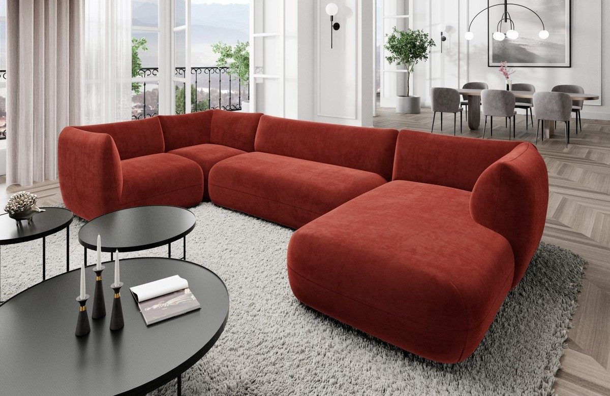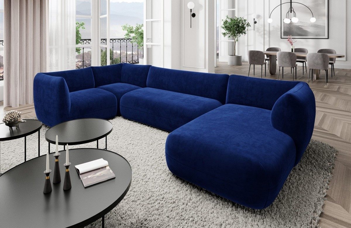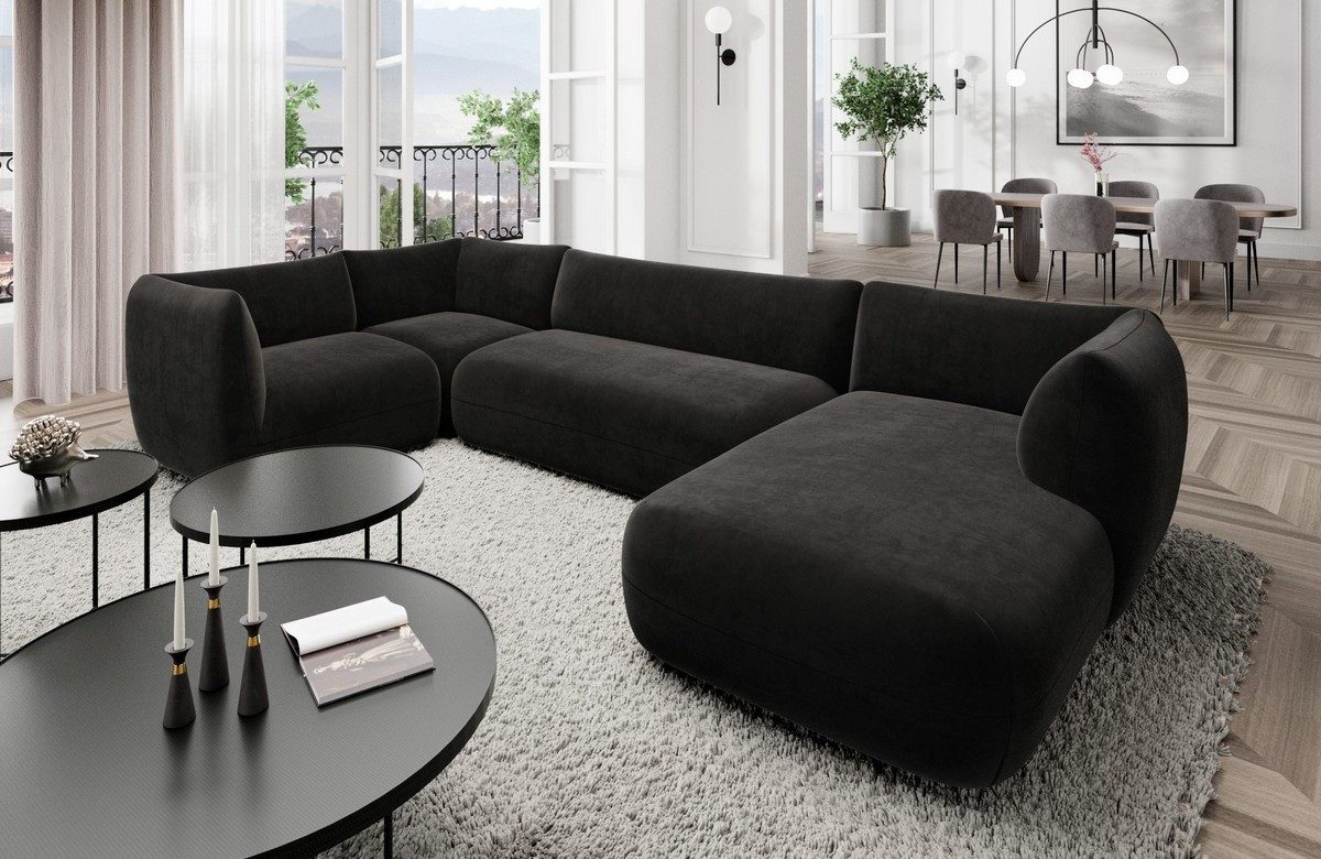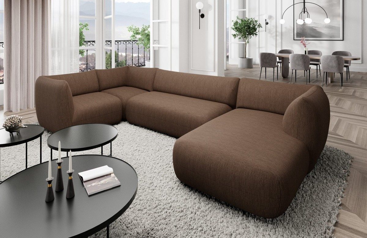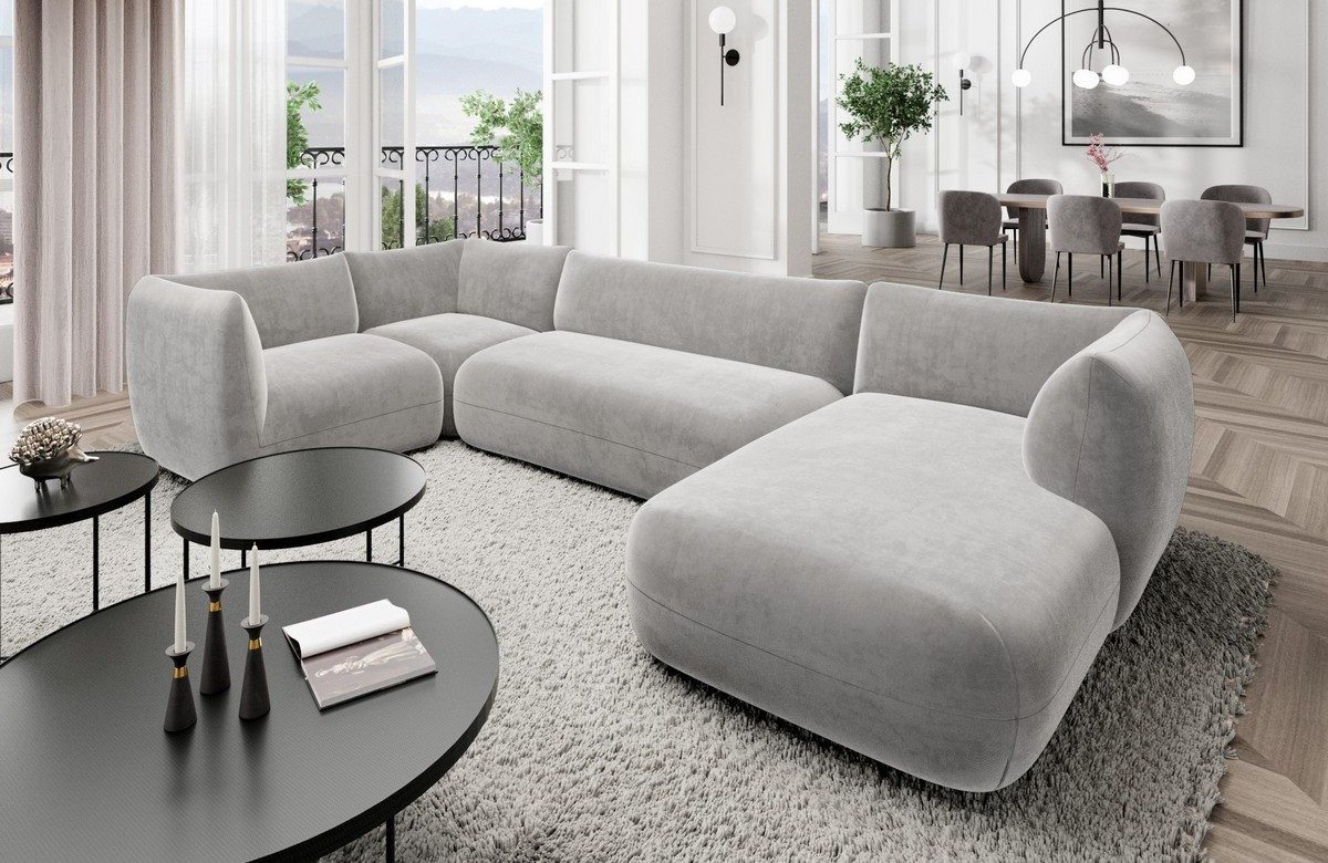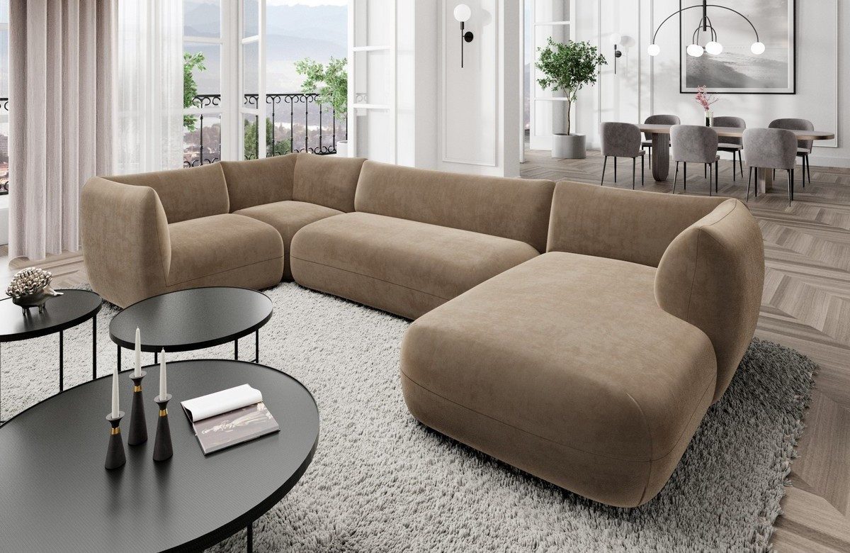 Die Polster Wohnlandschaft Madrid in U-Form bringt Eleganz und Komfort in Ihr Wohnzimmer. Dieses großzügige Sofa ist in drei luxuriösen Stoffbezügen erhältlich: Boucléstoff, Strukturstoff und Samtstoff. Jeder dieser hochwertigen Bezüge verleiht dem Sofa einen individuellen Charakter und sorgt für ein stilvolles Ambiente.