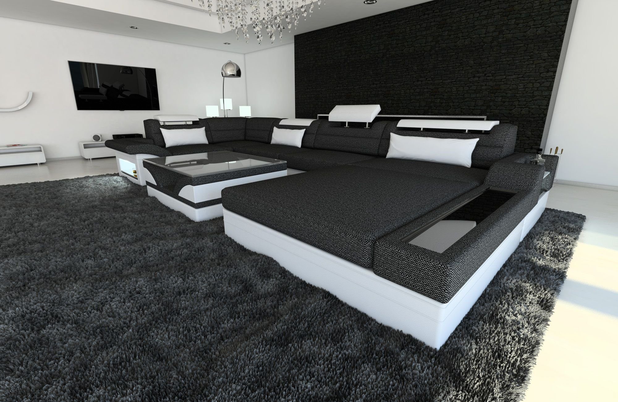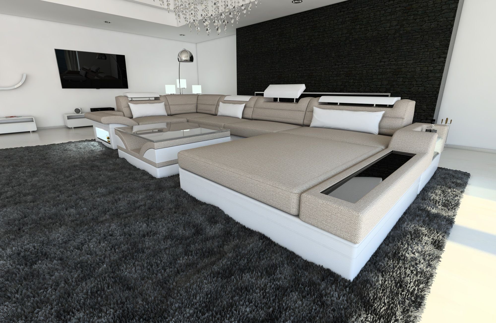 Sofa Dreams Wohnlandschaft Stoff Couch Polster Sofa Mezzo U Form Stoffsofa, mit LED, wahlweise mit Bettfunktion als Schlafsofa, Designersofa