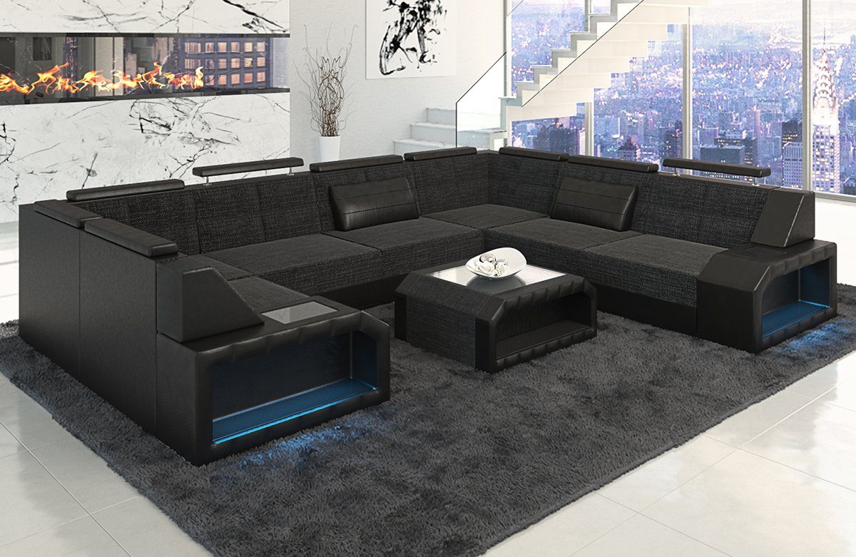 Die LED-Beleuchtung der Wohnlandschaft Ravenna mit Farbwechsel und TouchWheel-Fernbedienung lässt diesen Wunsch Realität werden.