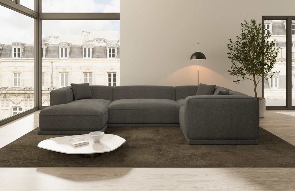 Die besonders robusten Armlehnen und Rückenlehnen der Merida U Form Wohnlandschaft bieten nicht nur eine ergonomische Unterstützung, sondern auch eine langanhaltende Qualität und Stabilität. Mit Platz für bis zu sechs Personen und einer großzügigen Ottomane bietet dieses Sofa ausreichend Raum für Sie und Ihre Gäste, um sich zu entspannen und zu genießen. Das luxuriöse und elegante Design der Merida Wohnlandschaft macht sie zum Mittelpunkt Ihres Wohnzimmers und verleiht Ihrem Raum eine zeitlose Schönheit.