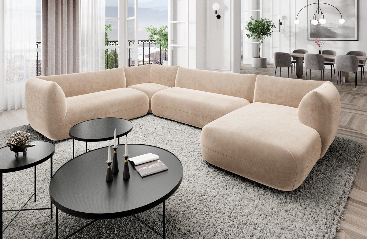 Tauchen Sie ein in puren Komfort mit der Stoff Wohnlandschaft Madrid XXL. Dieses großzügige Polstersofa bietet Platz für bis zu sechs Personen und ist in drei exquisiten Stoffbezügen erhältlich: luxuriöser Boucléstoff, robuster Strukturstoff und edler Samtstoff. Jeder Stoffbezug verleiht Ihrem Wohnzimmer eine besondere Note und bietet gleichzeitig höchsten Komfort und Langlebigkeit.