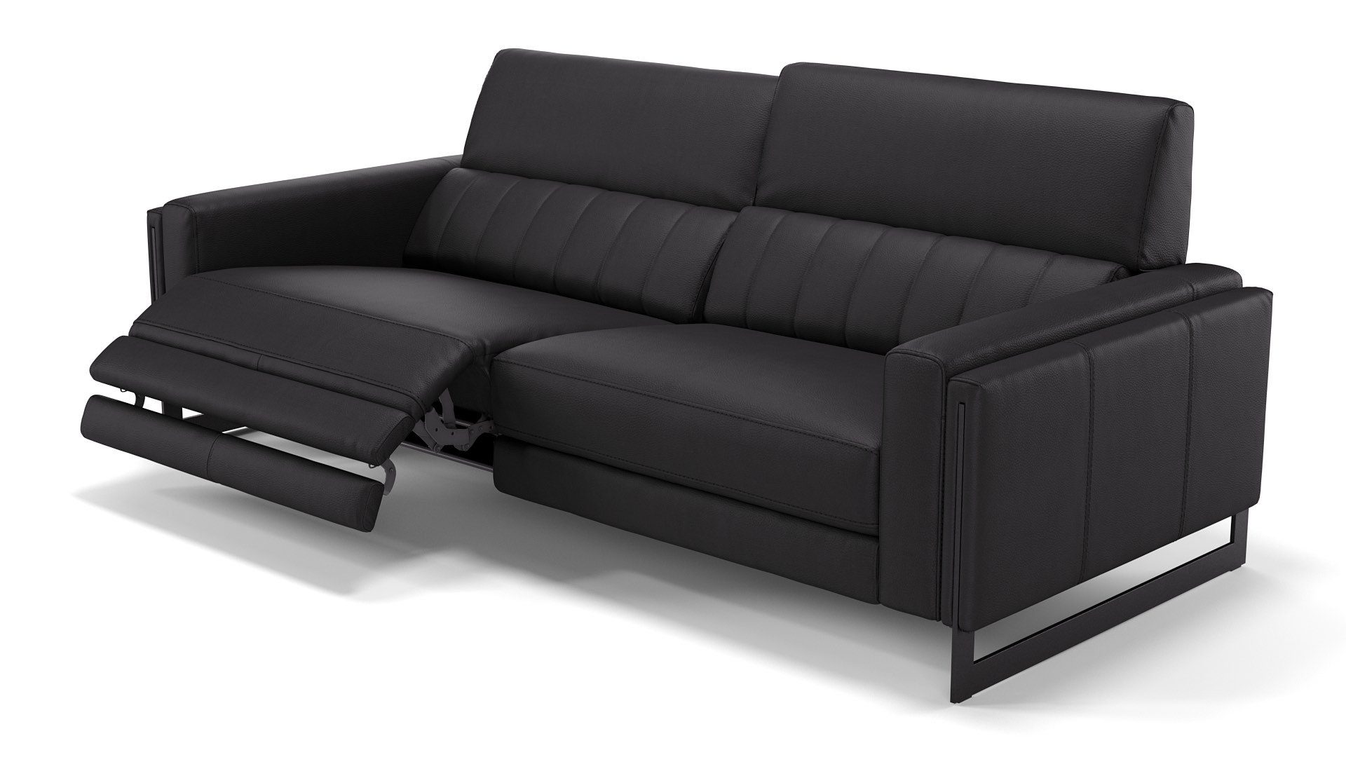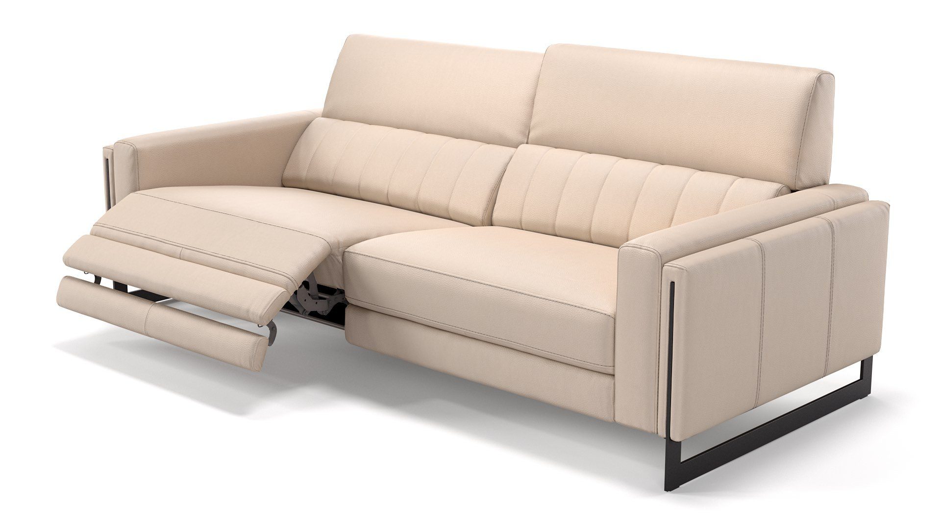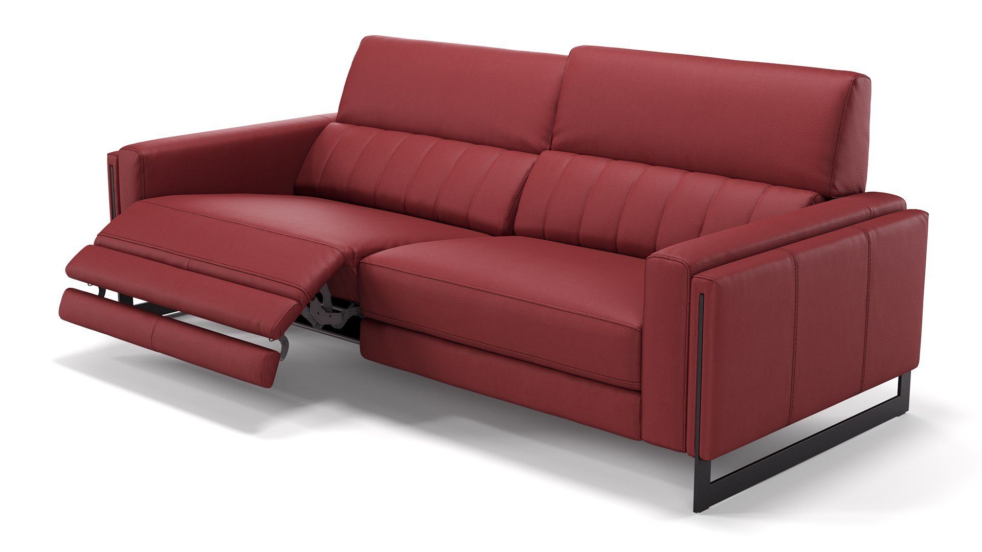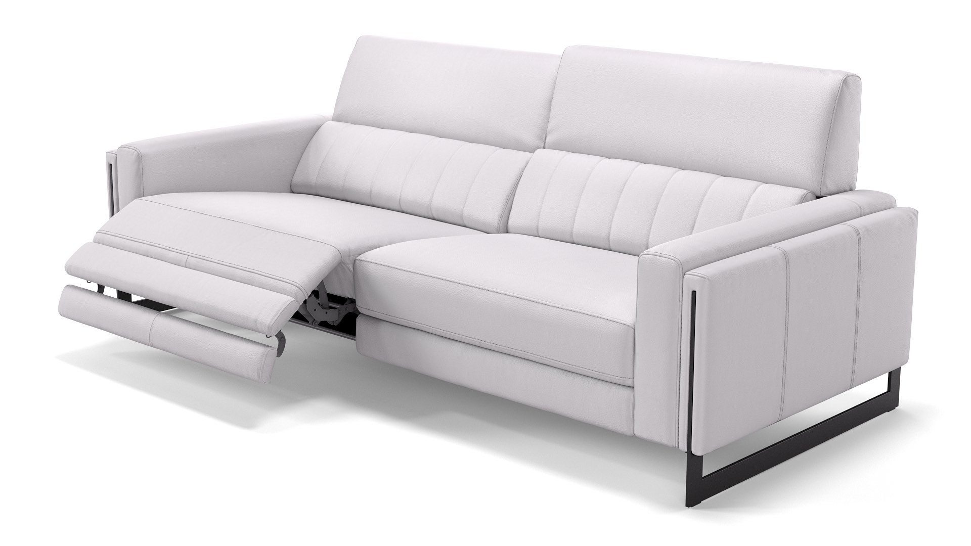 Ledercouch mit elektrischer SitztiefenverstellungNeben ihrem Äußeren kann diese Couch auch mit jeder Menge Komfort-Extras punkten. Per Knopfdruck lassen sich die beiden großzügig dimensionierten Sitzeinheiten des 3-Sitzer Sofas in die gewünschte Position fahren.