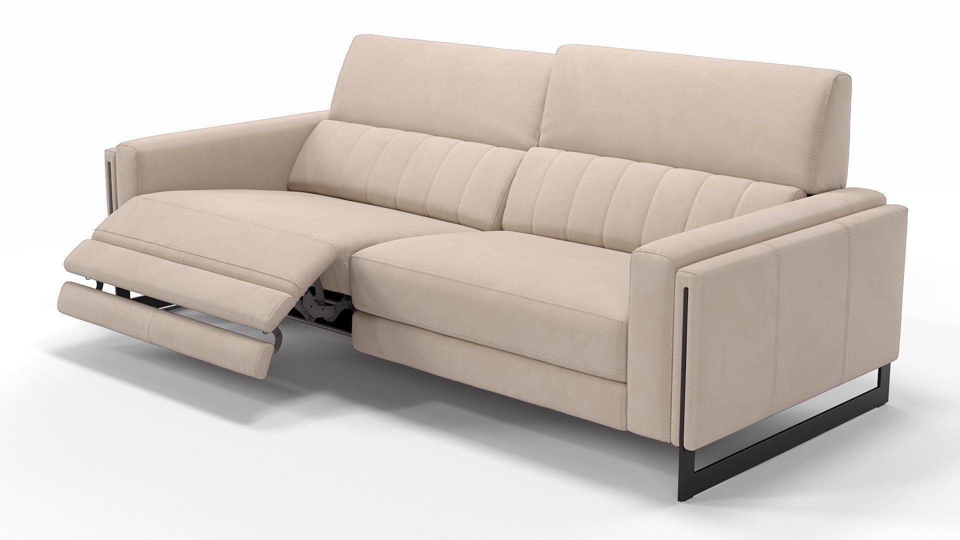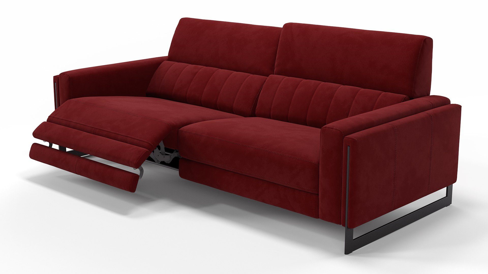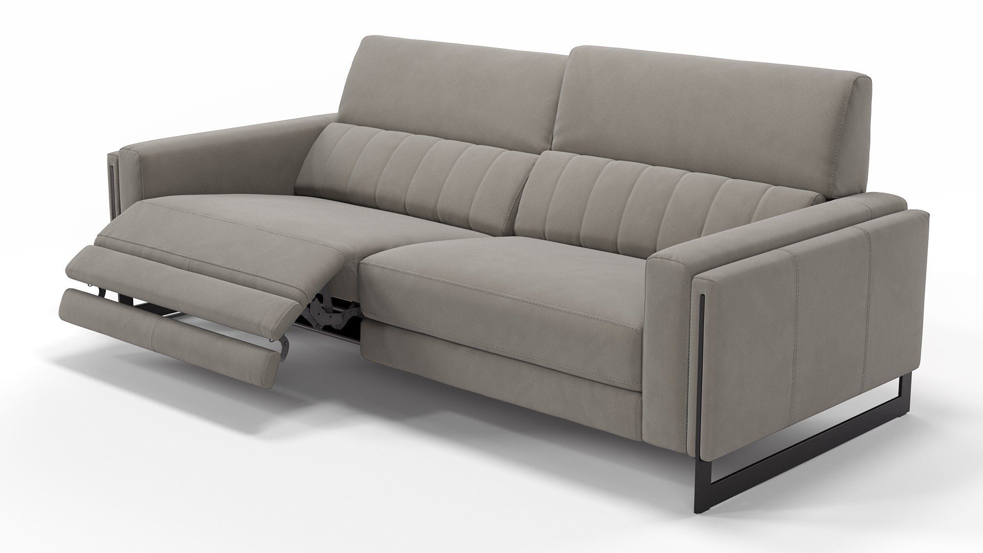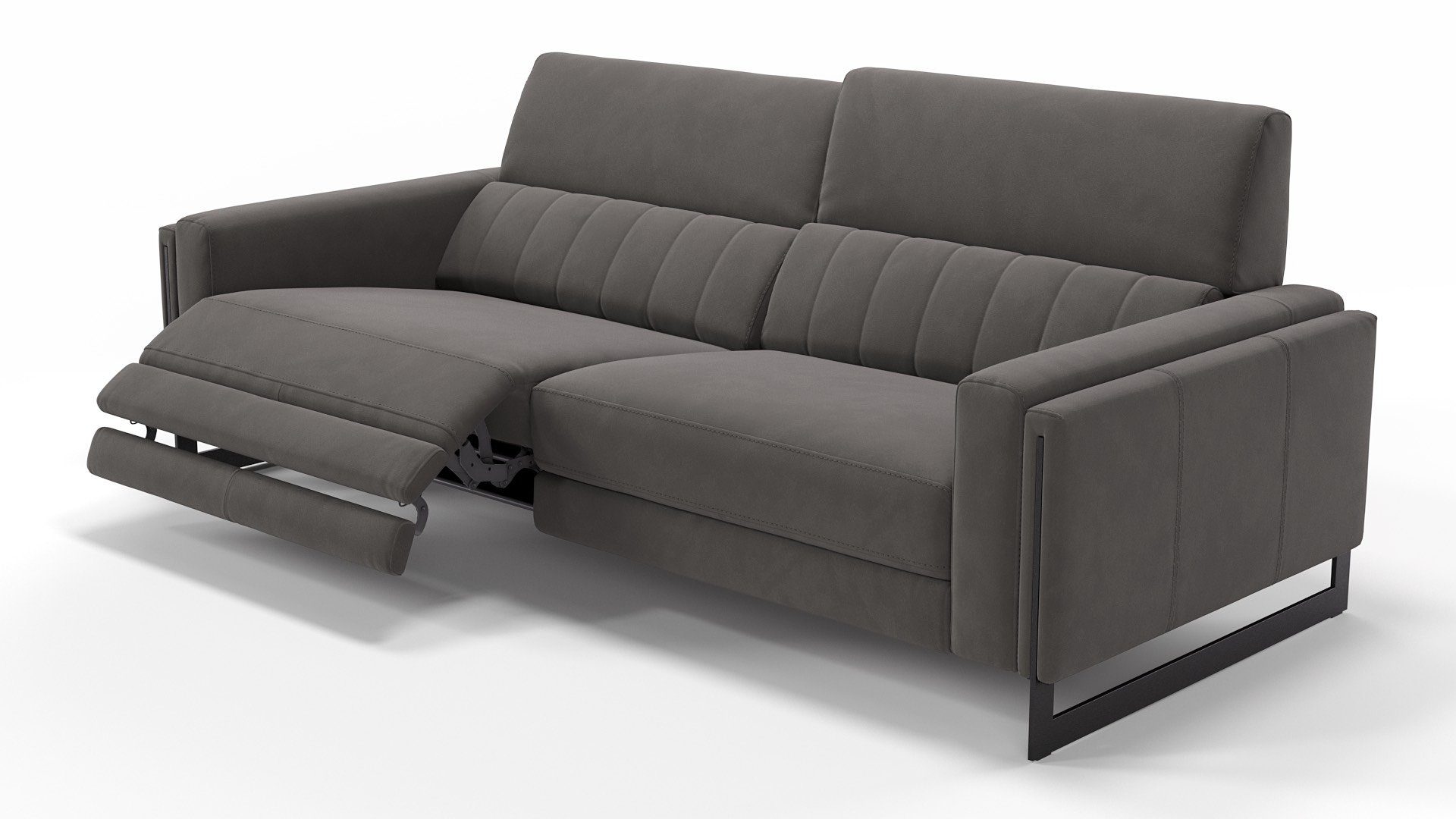 Entspannung auf KnopfdruckKommen Sie in den Genuss individueller Entspannung – und das ganz bequem per Knopfdruck. Diese italienische 3-Sitzer Couch ist mit zwei Relaxsitzen ausgestattet, deren Sitztiefe sich einfach elektrisch verstellen lässt. Dabei hebt sich nicht nur das Fußteil in die Höhe, auch die Rückenlehne fährt nach hinten.