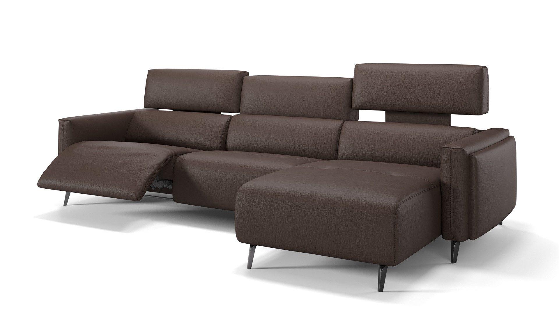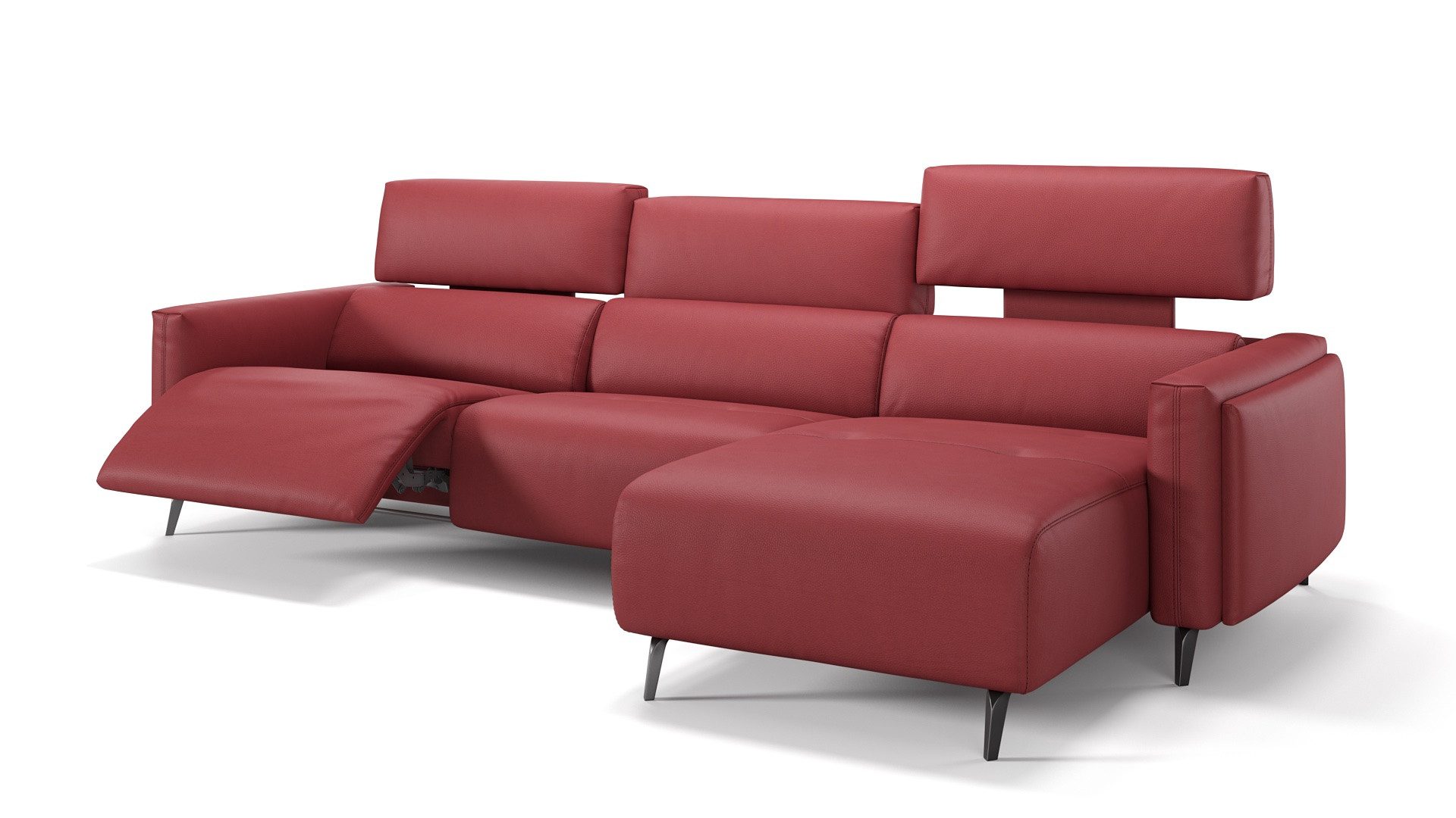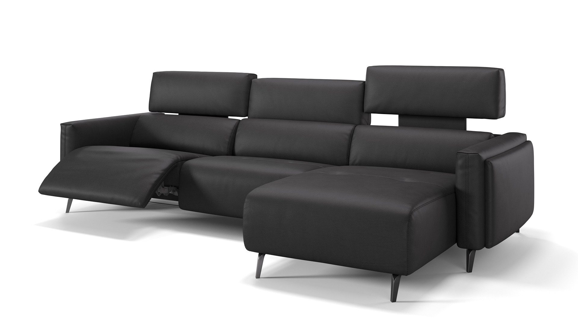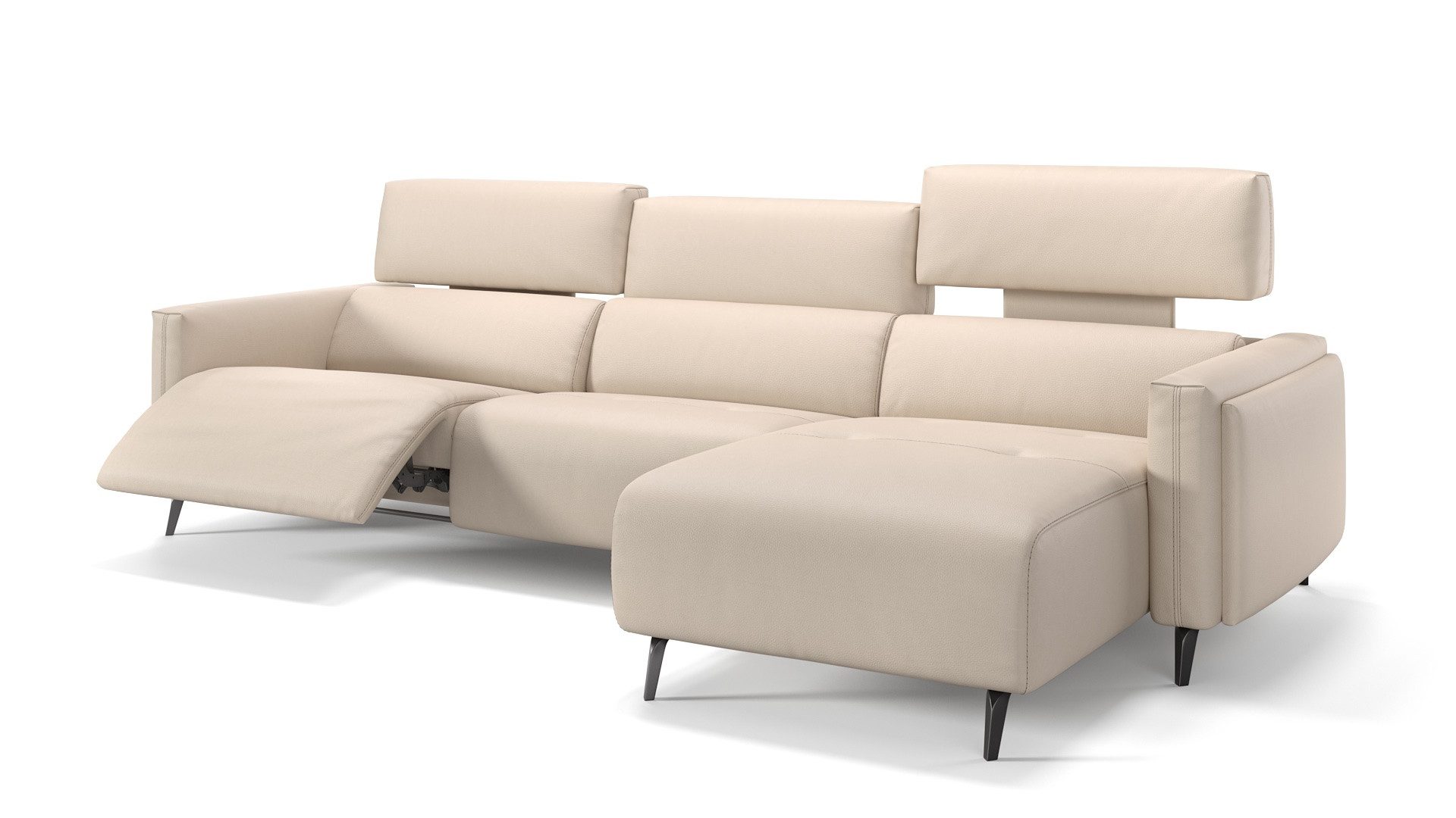Gemütlichkeit auf allen Ebenen: Avella punktet mit Relaxfunktion und mehrAvella bietet aber nicht nur optische Vorzüge. Das Ecksofa aus Leder bringt ein elektrische verstellbaree Kopflehnen mit, dessen Neigung sich per Hand anpassen lässt – ob zum Lesen, Fernsehen oder in der geselligen Gesprächsrunde. Zusätzlich ist der äußere Sitz gegenüber der Recamiere mit einer elektrischen Relaxfunktion ausgestattet. Per Knopfdruck auf die versteckte Steuereinheit lassen sich Kopf- und Rückenlehne sowie das Fußteil individuell anpassen. So ist ein gemütlicher Feierabend auf der Eckcouch garantiert, die das Wohnzimmer zudem durch ihre moderne Formsprache und attraktiven Details verschönert.