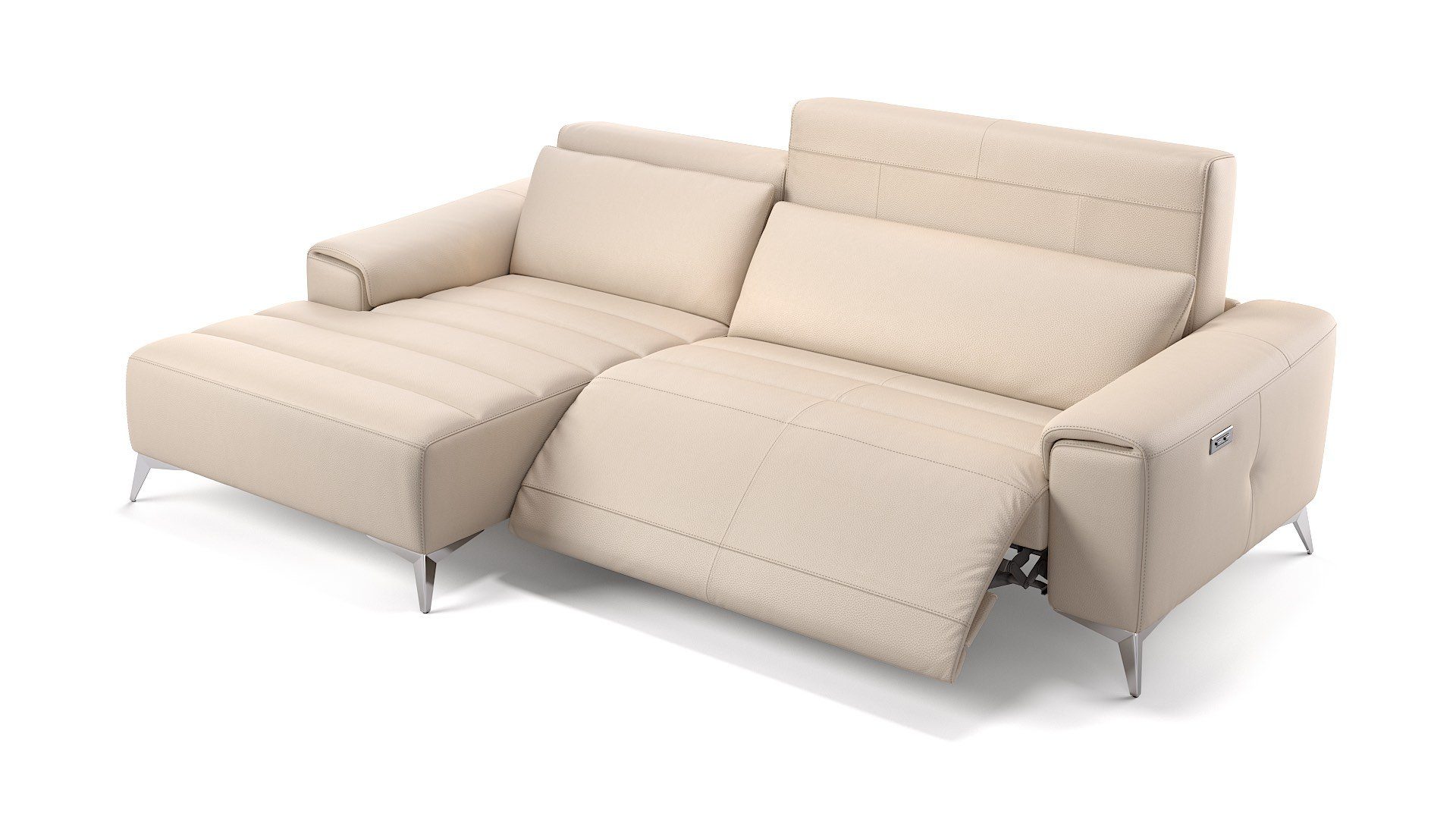 Ausstattung | Elektrische Relaxfunktion per Knopfdruck Getrennt elektrisch verstellbare Rückenlehne am 2-Sitzer & Liegefläche Rückenhöhe um ca. 17cm erweiterbar Sofa in 2 Größen erhältlich 10 verschiedene Fußvarianten Italienisches Design wandfrei stellbar |