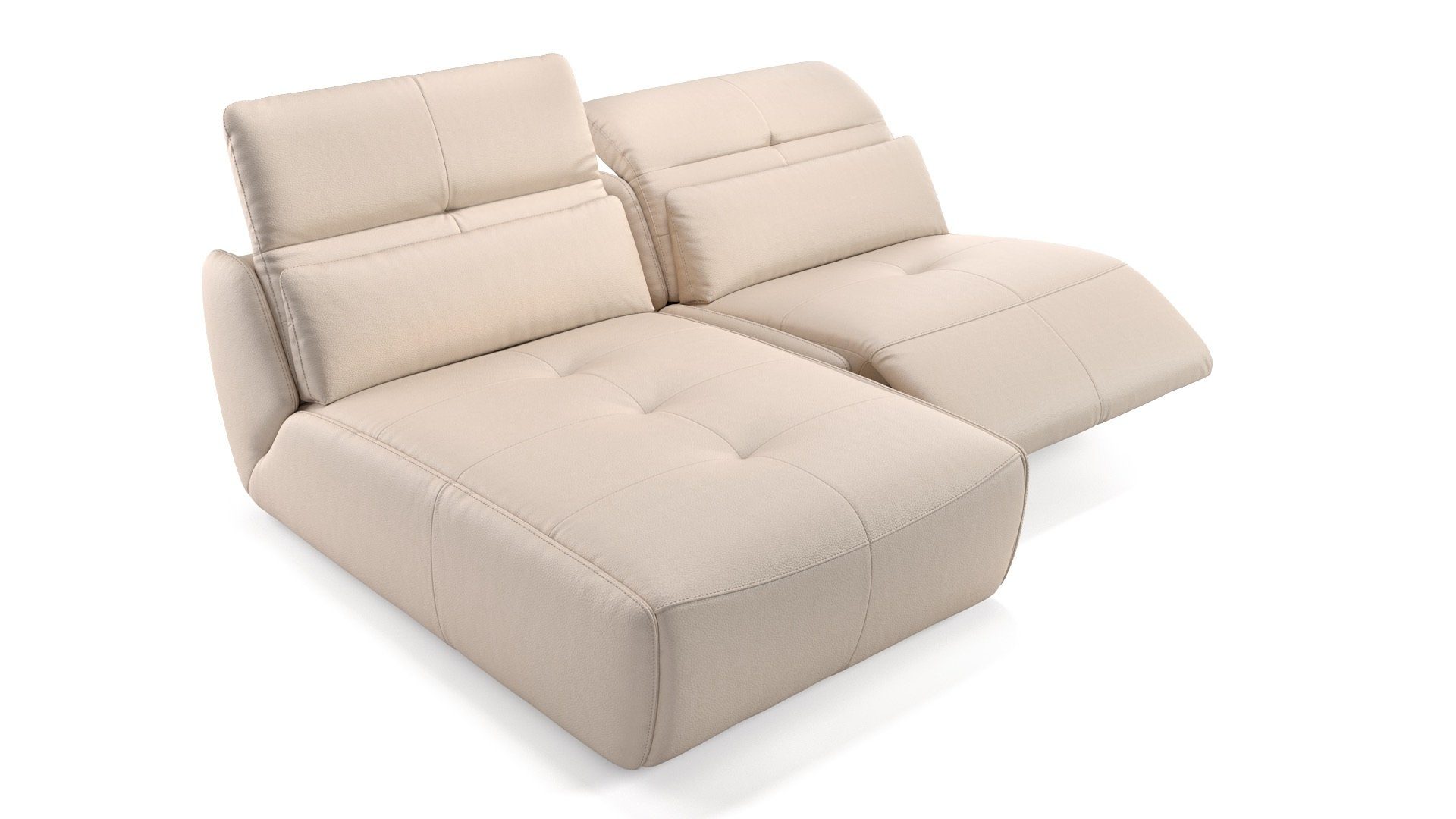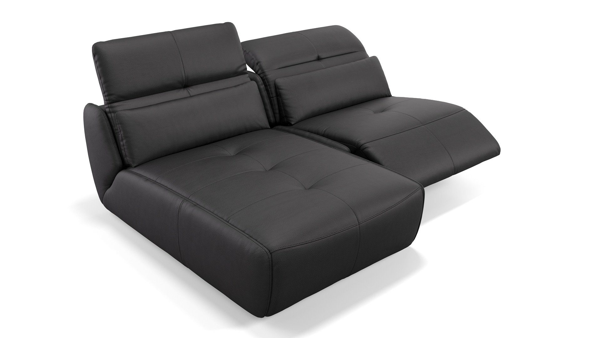 Ausstattung | Elektrische Relaxfunktion per Knopfdruck am 1-Sitzer Elektrisch verstellbare Kopflehne am 1-Sitzer Mechanisch verstellbare Kopflehne an der Liegefläche Liegefläche links oder rechts davorstehend stellbar Sofa ist in 4 Größen bestellbar Auf Wunsch zweifarbig bestellbar Modernes Design wandfrei stellbar |