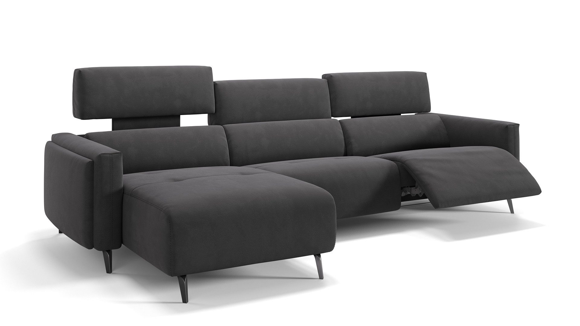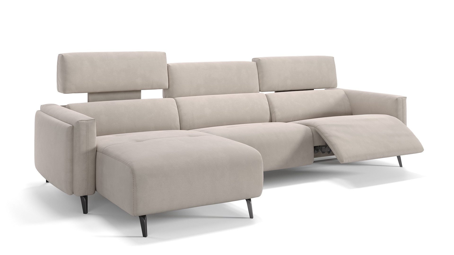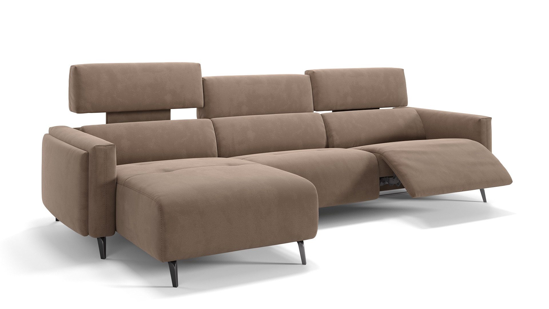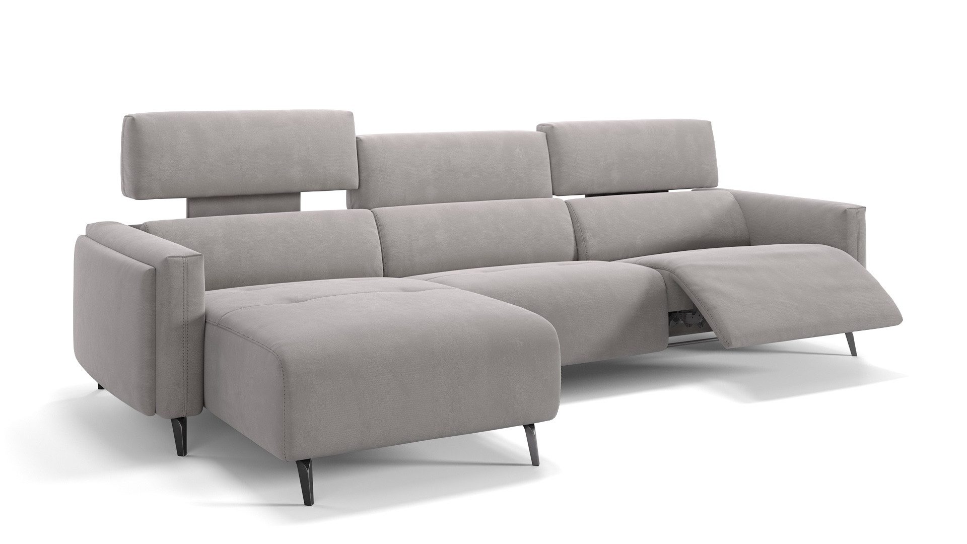Überzeugendes Ecksofa mit EntspannungsfunktionenDie Komfort-Funktionen des Ecksofas runden seine ästhetischen Vorzüge ab: Variieren Sie am Außensitz per Knopfdruck die Position von Fußteil, Kopf- und Rückenlehne. Zusätzlich lässt sich das Kopfteil per Hand in der Neigung anpassen. So bietet es immer die richtige Nackenunterstützung – ob zum Lesen, für gesprächige Runden, für gemütliches Online-Shopping oder beim Ausspannen vor dem TV.