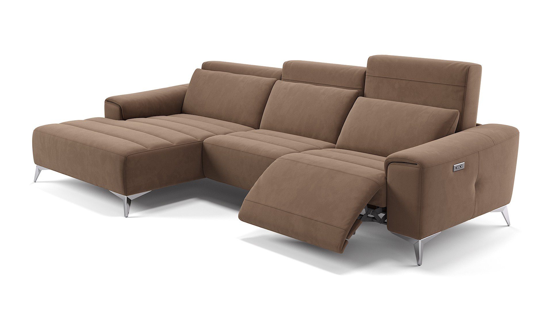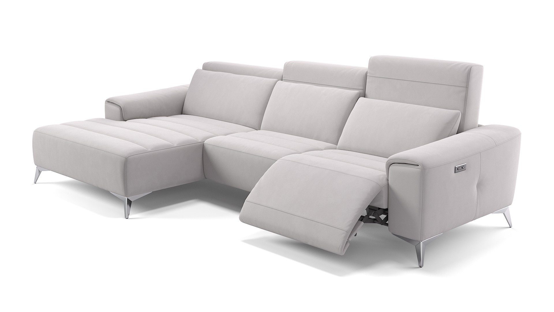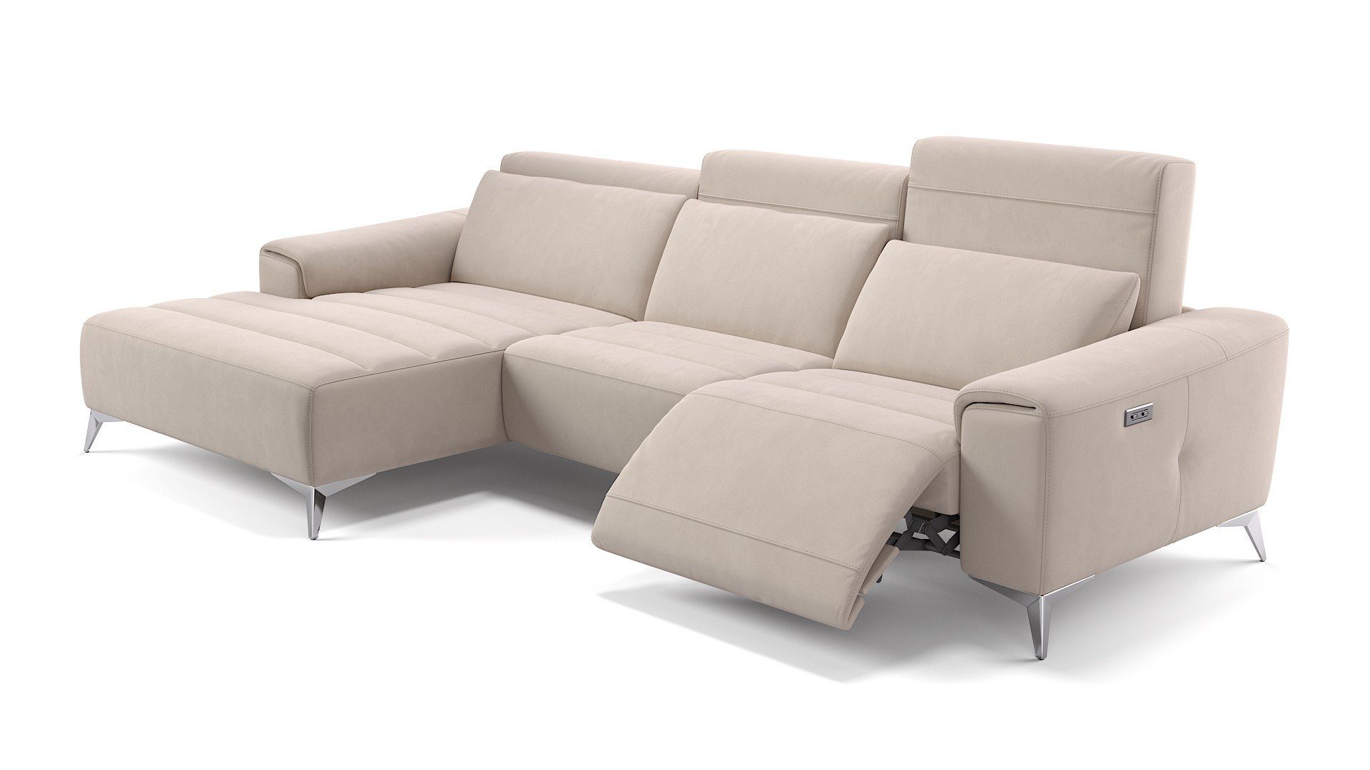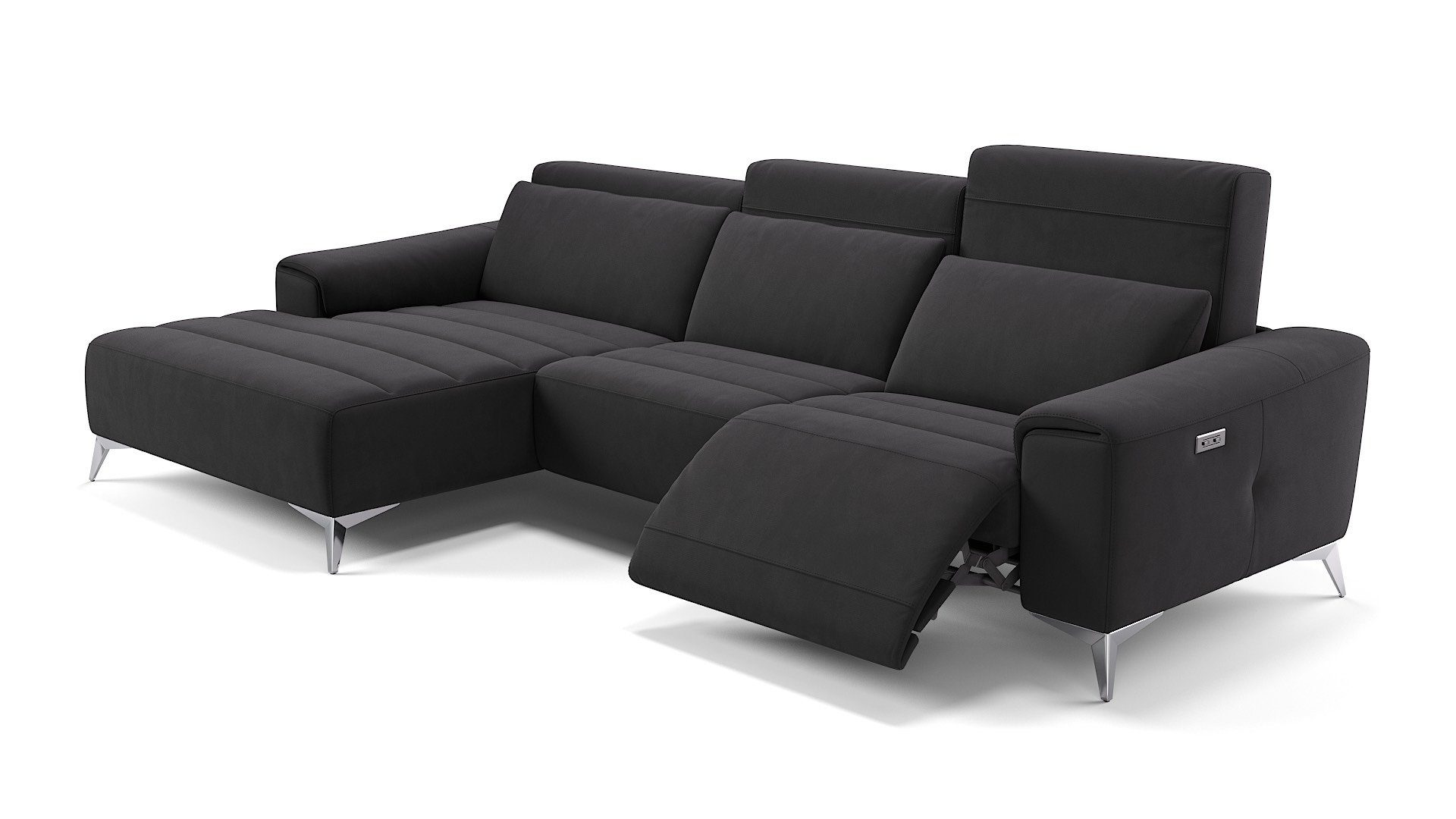 Ausstattung | Elektrische Relaxfunktion per Knopfdruck am äußeren Sitz Getrennt elektrisch verstellbare Rückenlehnen am 2-Sitzer & Liegefläche Auf Anfrage Mittelsitz auch mit Relaxfunktion Rückenhöhe um ca. 17cm erweiterbar Sofa in 3 Größen erhältlich 10 verschiedene Fußvarianten Italienisches Design wandfrei stellbar |