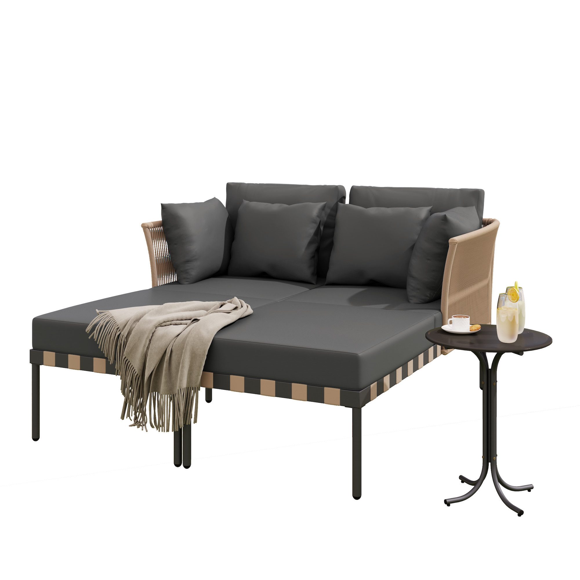 Lieferumfang | 1x Loungebett 1x Couchtisch 4x Zierkissen 2x Rückenkissen 4x Sitzkissen |