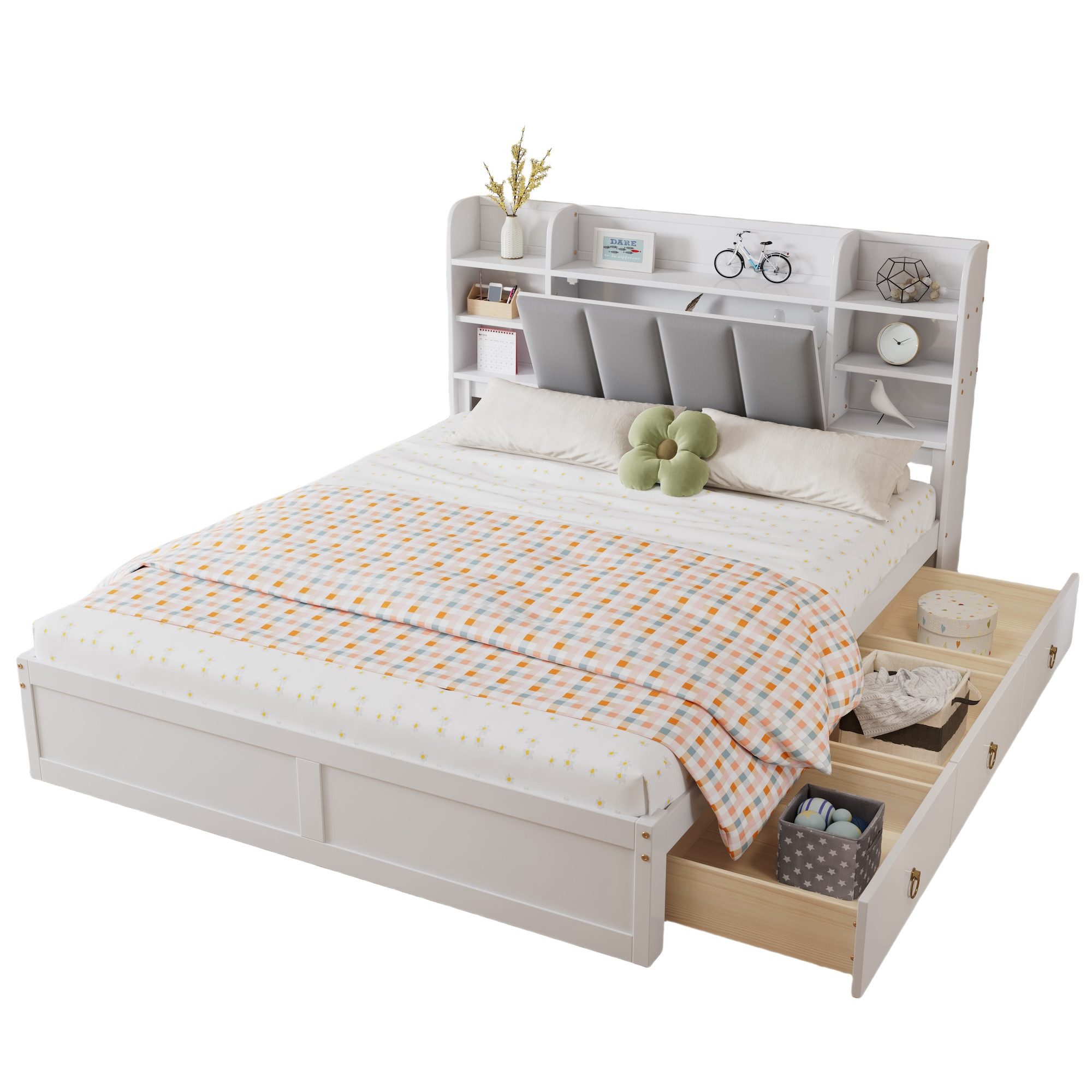 Lieferumfang | 1x Holzbett 1x Lattenrost 3x Schubladen |