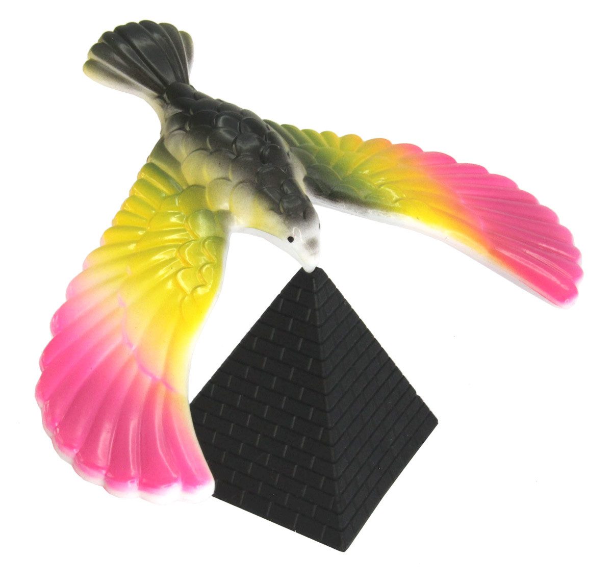 Wie schwerelos schwebt dieser Schwebevogel mit seiner beachtlichen Spannweite von 16 cm majestätisch über der im Lieferumfang enthaltenen Pyramide. Ermöglicht wird dies durch kleine Gewichte in den Flügeln, die dafür sorgen, dass sich der Schwerpunkt des Schwebevogels genau unterhalb des Schnabels befindet.