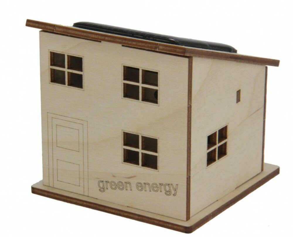 Ganz einfach zeigen, wie alternative Energie sinnvoll genutzt werden kann! Mit diesem Bausatz gelingt das spielend. Das Null-Emissionen-Haus wird als Bausatz geliefert und kann Dank der detaillierten Anleitung sehr einfach montiert werden. Die auf dem Dach montierte Solarzelle fängt das Sonnenlicht ein und lädt damit einen Akku. Dieser versorgt eine eingebaute LED, die sich automatisch bei Dunkelheit einschaltet.