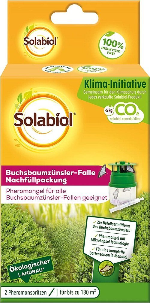 Sauberes und schnelles Nachfüllen der Solabiol Buchsbaumzünsler-Falle mit der praktischen Nachfüll-Pheromonspritze.