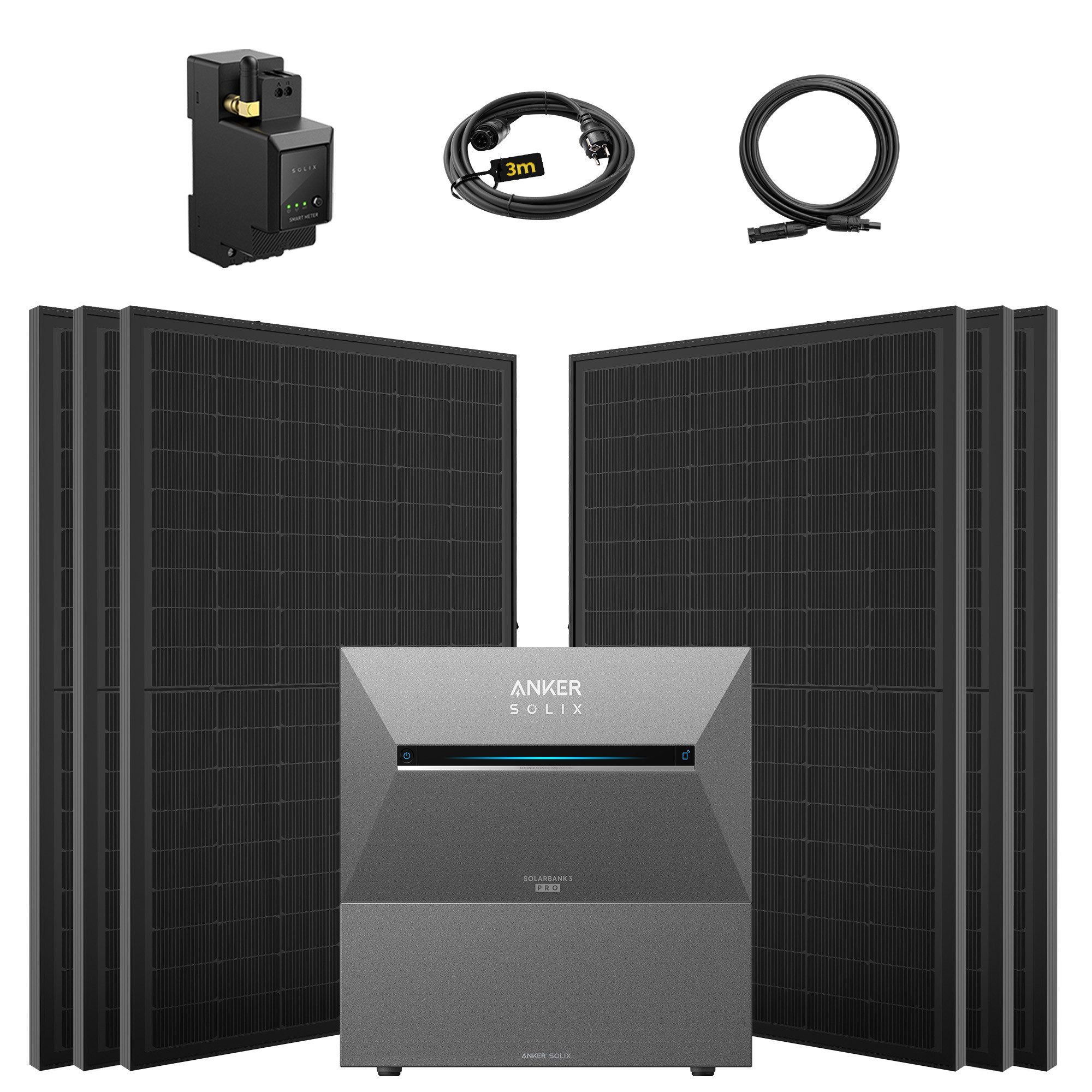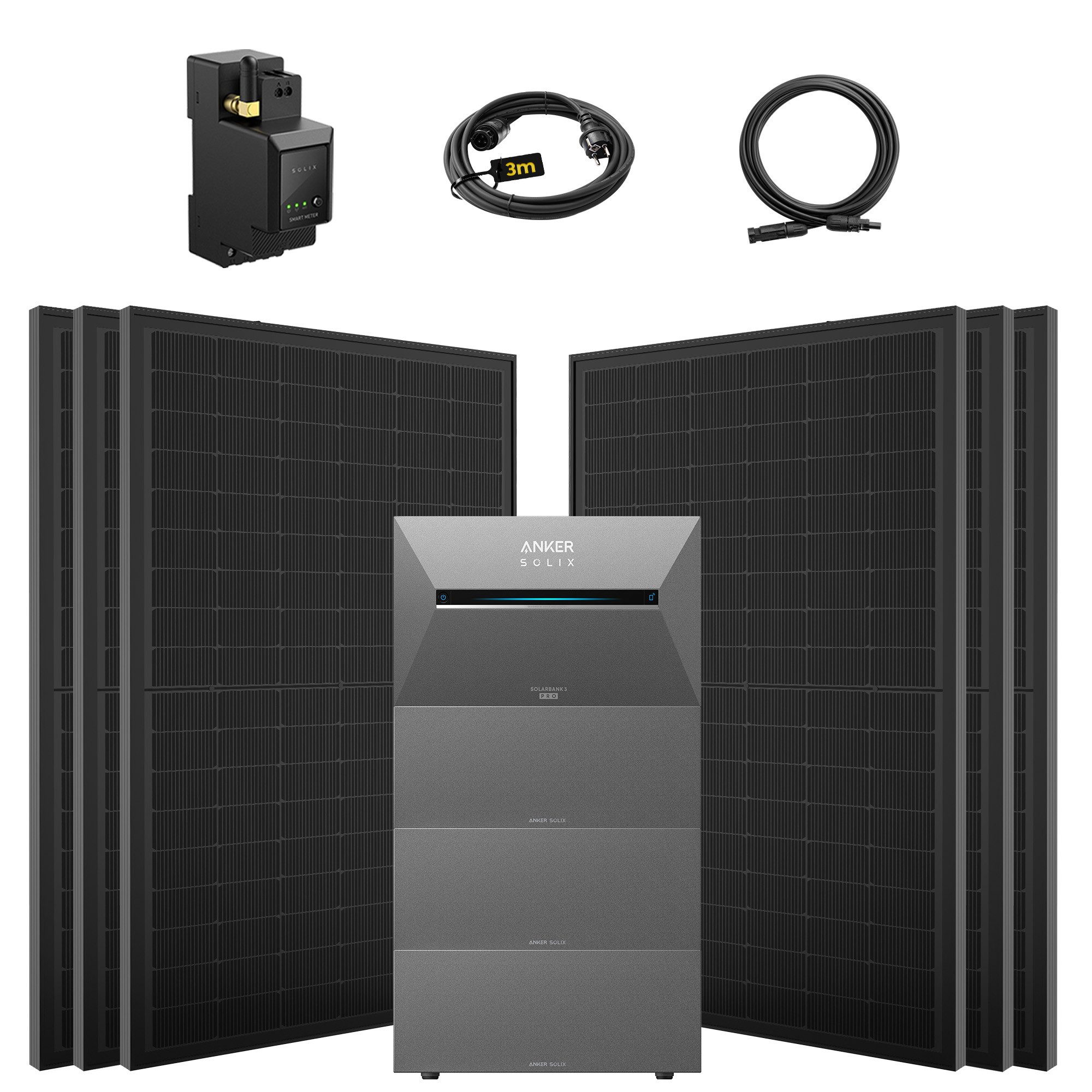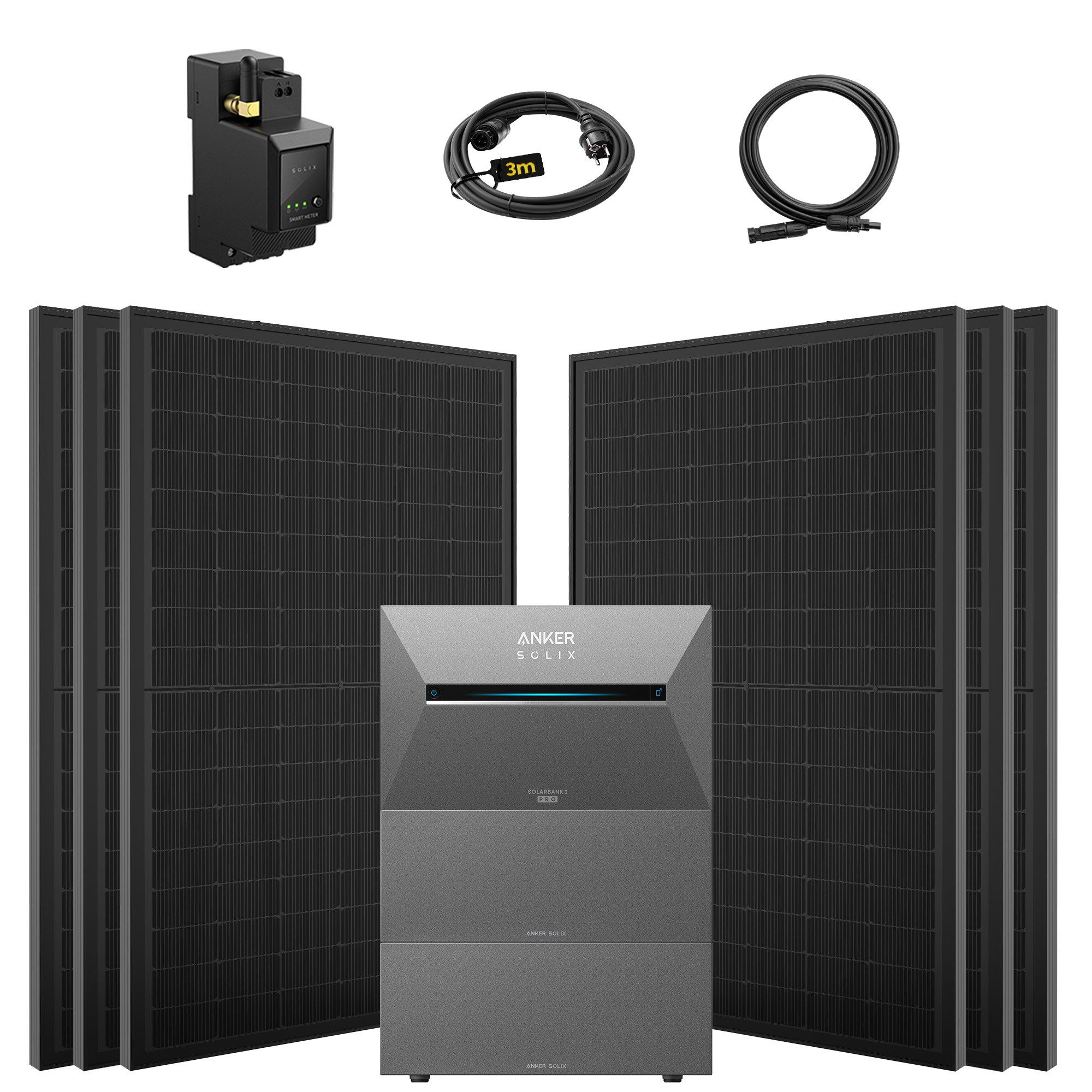 Das Balkonkraftwerk besteht aus hochwertigen Komponenten: 6 Solarmodule mit jeweils 500 W, 1 x Anker SOLIX Solarbank 3 E2700 Pro, ein 3m Verbindungskabel, 8 x MC4 Solarkabel Set, 2x Y-Adapter Paar und 1 x Smart Meter, optional Anker SOLIX BP2700 Erweiterungsakku.