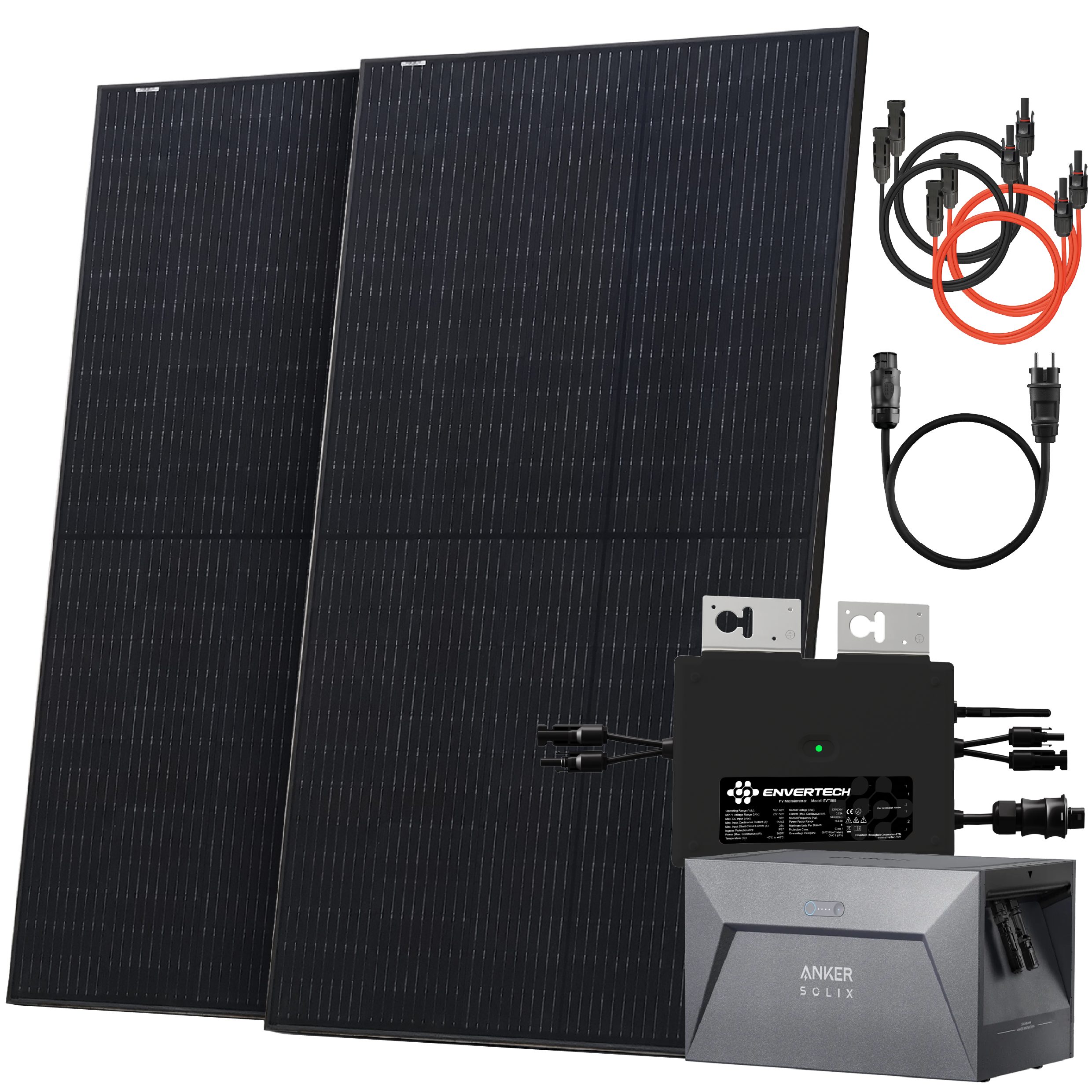 Ausstattung | 1000W Balkonkraftwerk 800 Watt Wechselrichter 1,6 kWh Anker Solix 1 500W Solarmodule Envertech Anker |