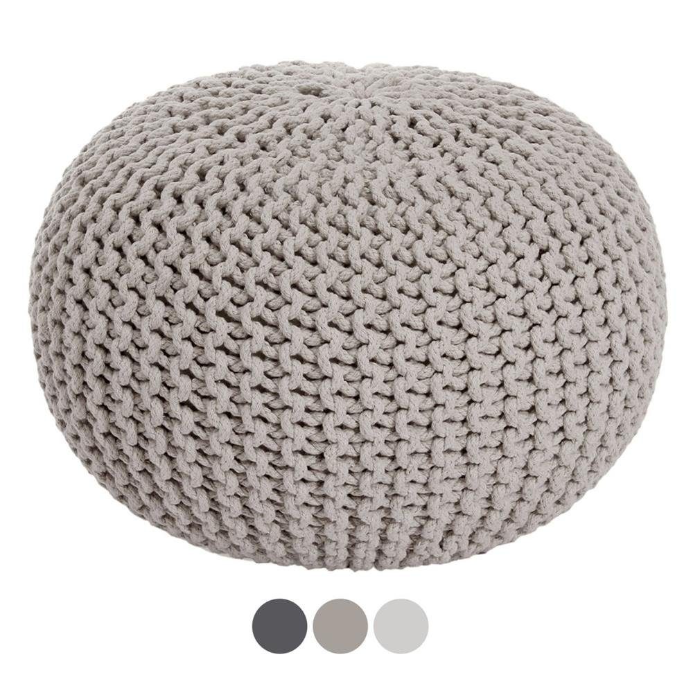 Tolle Sitzpoufs in Grobstrick-Optik mit den Maßen Ø 45 cm, H 30 cm in 3 Farben. Jetzt Sitzpouf shoppen., Sitzhocker in trendigem, modernen Strick-Design aus 100% Baumwolle, Pouf handgefertigt in 3 verschiedene Farben, Beistelltisch als zusätzliche Sitzgelegenheit geeignet, Fuß-Hocker - geeignet für alle Wohnräume (Wohnzimmer - Schlafzimmer - Kinderzimmer - Badezimmer).