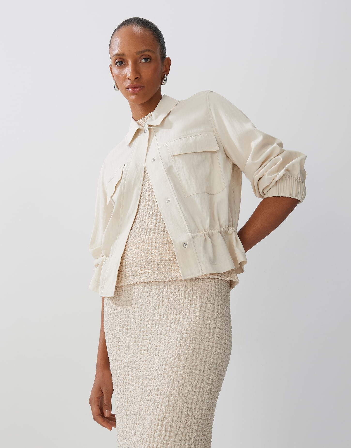 Die Blazer Jacke im angesagten Parachute Look dient als leichter Überzieher und lässt sich durch Zugbänder in der Taille individuell stylen.