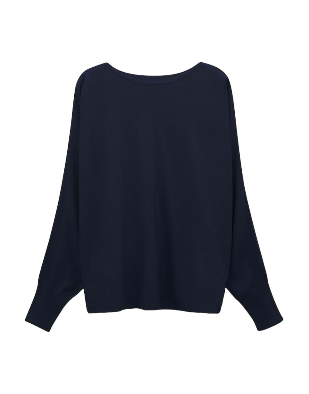 Dieser weich fallende Strickpullover ist ein schmeichelnder Jackenersatz im Sommer und im Winter ein kuscheliger Überzieher.