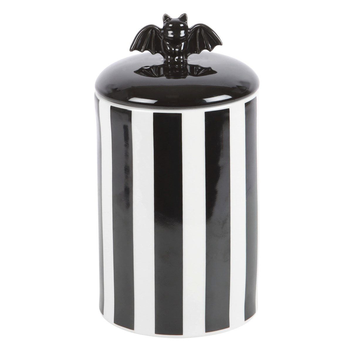 Unser einzigartiges schwarz-weißes Keramik-Vorratsglas ist nicht nur ein praktischer Aufbewahrungsort, sondern auch ein stilvolles Deko-Element für Ihr Zuhause. Mit einem abnehmbaren Deckel im kreativen Fledermaus-Design eignet es sich perfekt für:
