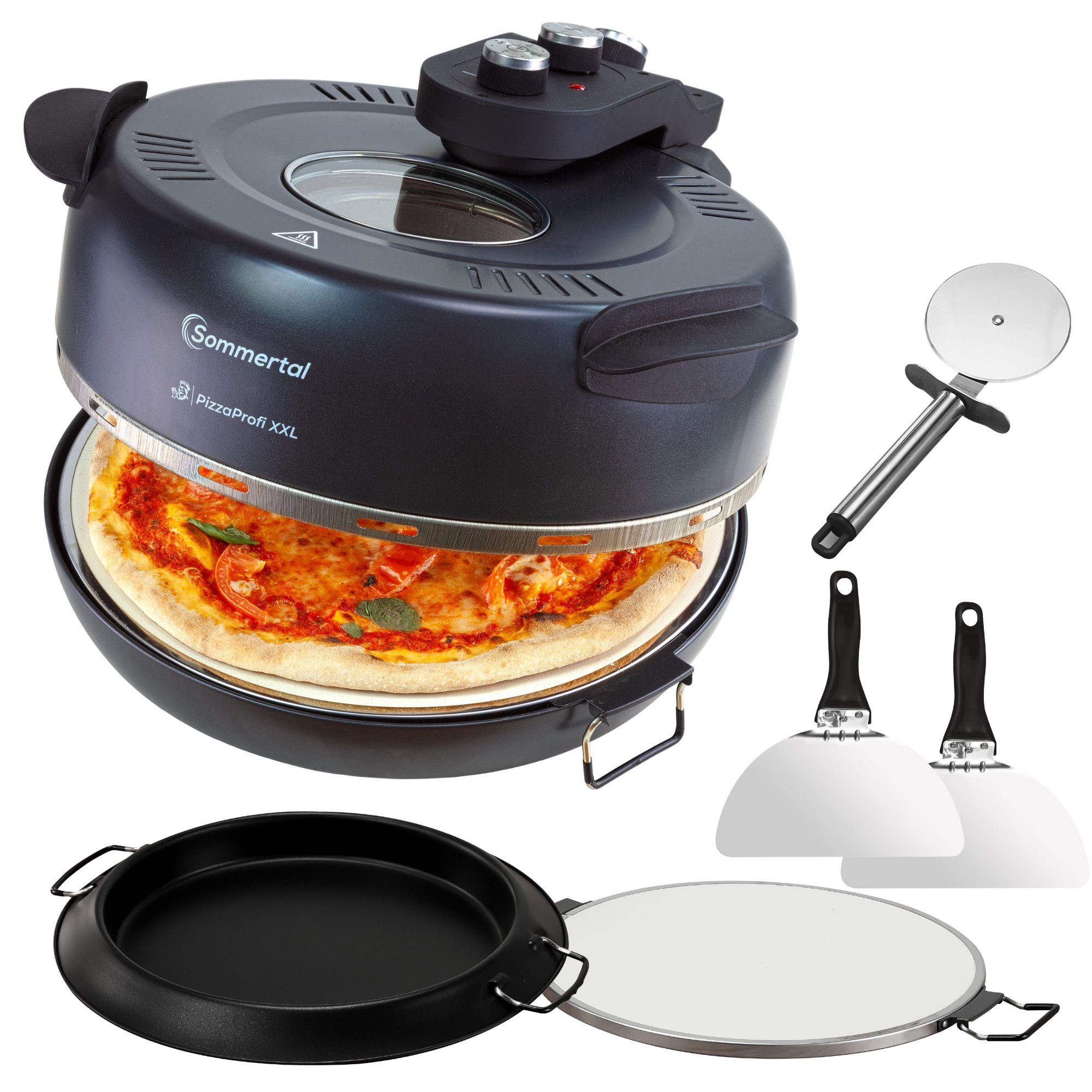 -PASSENDES ZUBEHÖR: Der Sommertal PizzaProfi kommt direkt mit dem passenden Equipment. Neben dem traditionell unbeschichteten Pizzastein erhält man zwei hochwertige Pizzaschieber, Pizzaroller und beschichteten Pfanneneinsatz. Dieser eignet sich perfekt für zum Garen, Warmhalten, Braten, Schmoren.