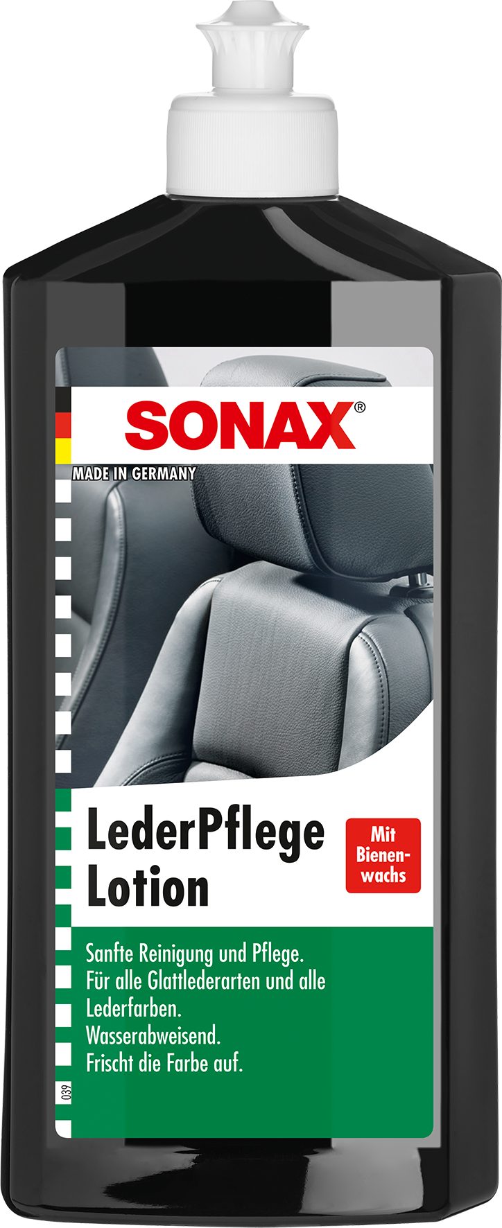 Reinigungs- und Pflegeemulsion für alle Glatt- und Kunstleder wie z. B. Autoinnenausstattungen, Motorrad-Kombis, Taschen, Möbel usw. Geeignet für alle Lederfarben. Entfernt mühelos Schmutz, Öl, Fett und frischt die Farben auf. Bienenwachs und Silikonöle machen das Leder geschmeidig und schützen es. Nach der Behandlung behält das Leder die ursprüngliche Griffigkeit und wird nicht rutschig. Mit Lederduft und UV-Schutz.