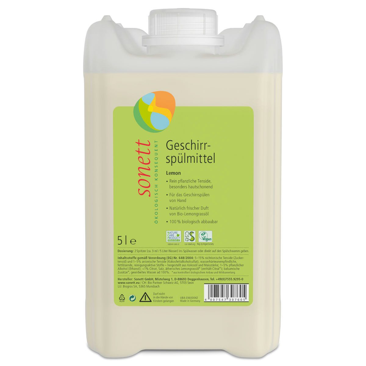 Das Sonett Geschirrspülmittel Lemon ist ein konzentriertes Produkt und daher sehr ergiebig im Gebrauch. Die verwendeten Tenside Kokosfettalkoholsulfat und Zuckertensid sind 100% biologisch abbaubar und in dieser Kombination zugleich sehr gut hautverträglich.