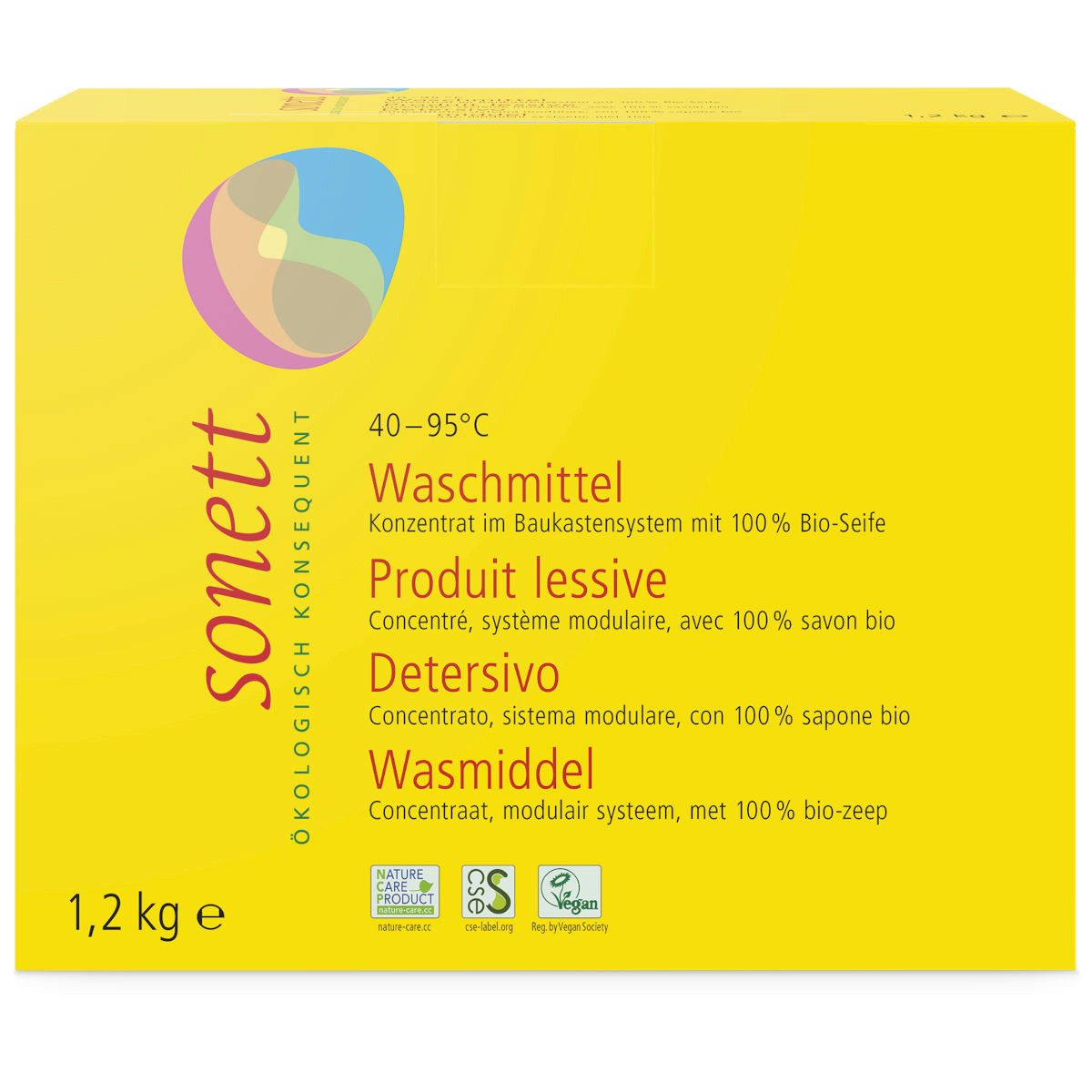 Das Sonett-Waschmittel enthält als Hauptwirkstoff Seife, die aus verschiedenen Pflanzenölen – Palmöl, Rapsöl und Kokosöl – durch Sieden mit Lauge hergestellt wird. Die Öle stammen zu 100% aus biologischem bzw. biologisch-dynamischem Anbau. Seife als waschaktive Substanz vereinigt in sich in einzigartiger Weise alle für den Waschprozess notwendigen Eigenschaften des Schmutzbenetzens, des Schmutzlösens und Schmutztragens. Soda wird hergestellt aus der Umsetzung von Kalk mit Kochsalz. Metasilikat entsteht durch Verschmelzung von Quarzsand und Soda. Soda und Metasilikat verstärken beide durch ihre Alkalität die Waschlauge und fördern das Ablösen vor allem von fettigen Substanzen. Zeolith A und Schichtsilikat haben beide als Ausgangsrohstoff Silikatgesteine. Neben ihrer Eigenschaft, den Kalk im Wasser zu binden, binden diese Substanzen zugleich auch die im Waschwasser gelösten organischen Stoffe und Farbpigmente und verhindern deren Absetzen auf der Wäsche. Fettalkoholsulfat, aus Kokosfett gewonnen, unterstützt die Seife in ihrer Fettlösekraft.