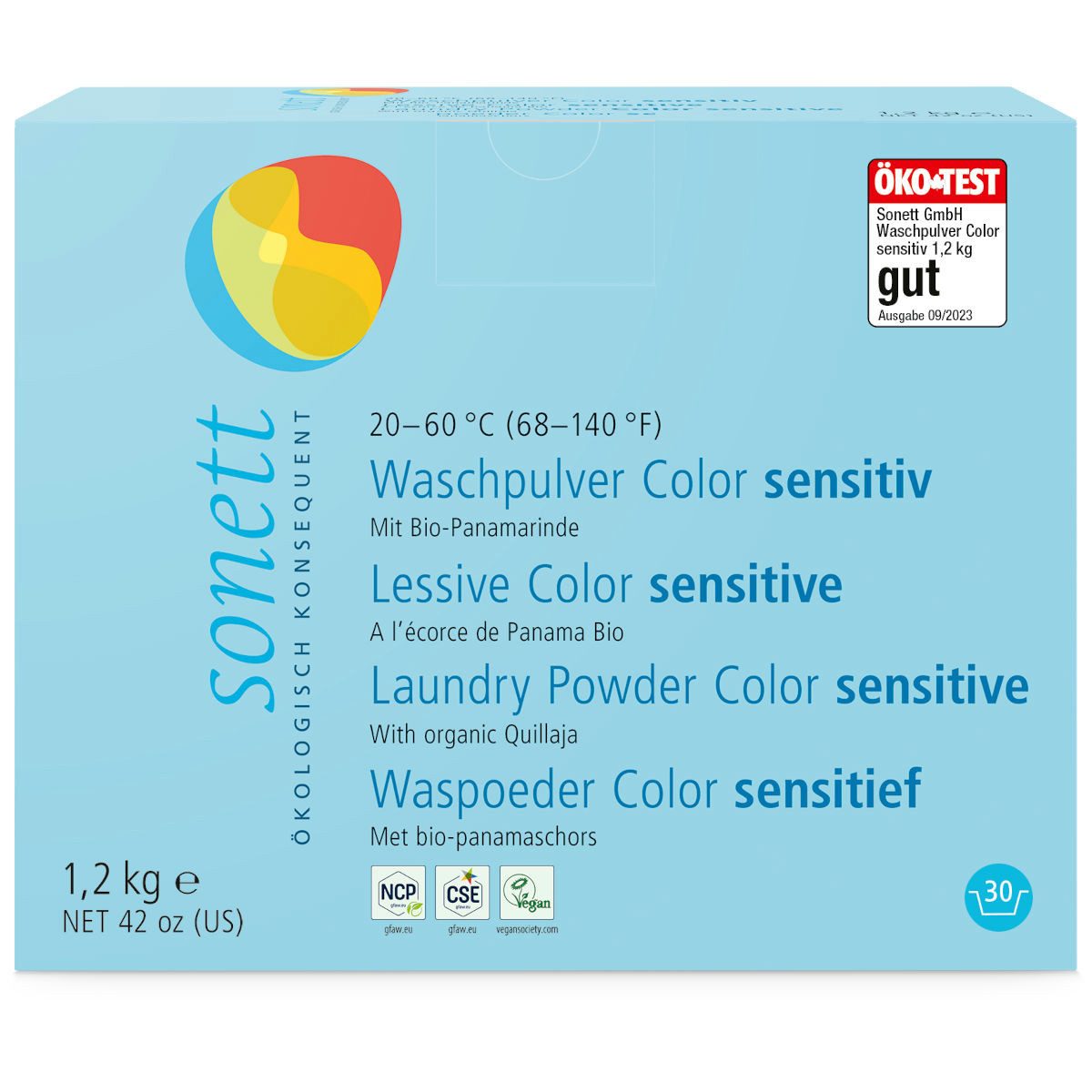 Das Sonett Waschpulver Color sensitiv ist ein hochkonzentriertes Pulverwaschmittel für alles Bunte und Feine. Mit Bio-Panamarindenextrakt, der berühmt ist für seine effektive Flecklösekraft. Ohne Kalkbindemittel aus der Erdölchemie wie Polyasparaginsäure, ausschließlich mit dem natürlichen Salz der Zitronensäure.