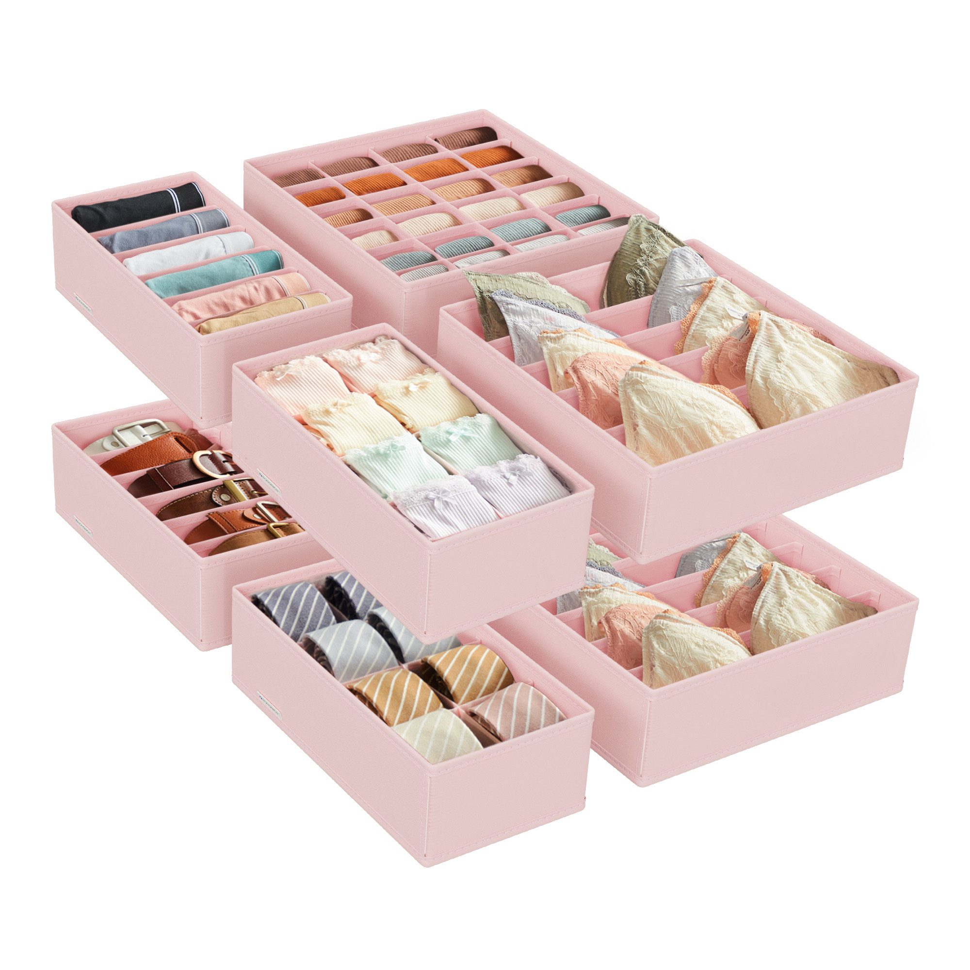 In diesen SONGMICS Organisationsboxen findet Ihre Unterwäsche ihren eigenen Platz, damit Sie nicht nur das Chaos in den Schubladen beseitigen und Ordnung schaffen, sondern auch leichten Zugriff auf Ihre Unterwäsche haben.