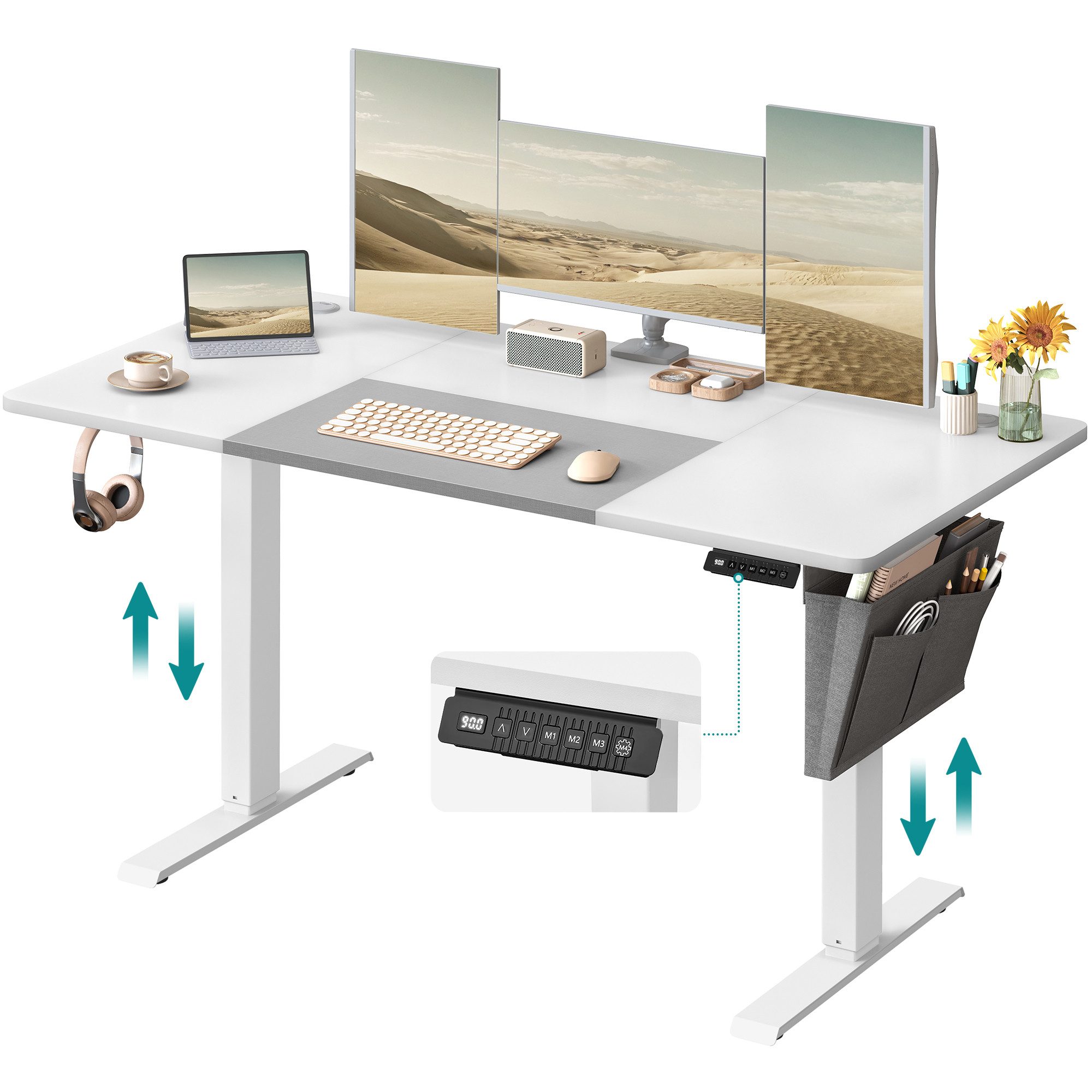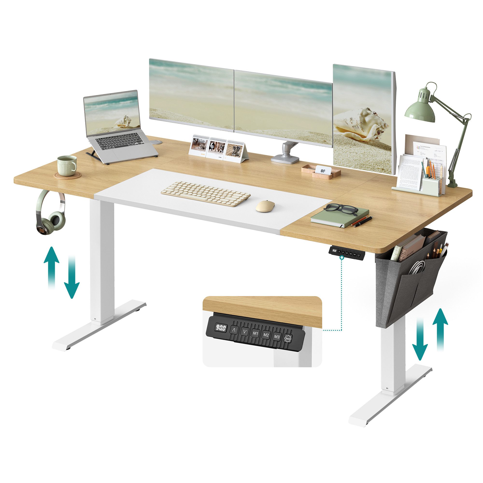 Dieser höhenverstellbare Schreibtisch ist Ihr perfekter Arbeitspartner! Die Höhe des Tisches ist von 72 bis 120 cm verstellbar, sodass Sie ganz nach Bedarf zwischen Sitzen und Stehen wechseln können, um die optimale Arbeitsposition zu finden. Die Memory-Funktion mit 4 Höhen ermöglicht es Ihnen, Ihre bevorzugte Höhe zu speichern. Der robuste Stahlrahmen und der hochwertige Motor sorgen für ein sanftes und schnelles Anheben und Absenken des Tisches, wobei der Geräuschpegel unter 48 dB liegt, damit Sie sich ungestört auf Ihre Arbeit konzentrieren können. 2 Kabellöcher, Organizer und Haken ermöglichen eine ordentliche Aufbewahrung Ihrer Arbeitsutensilien.
