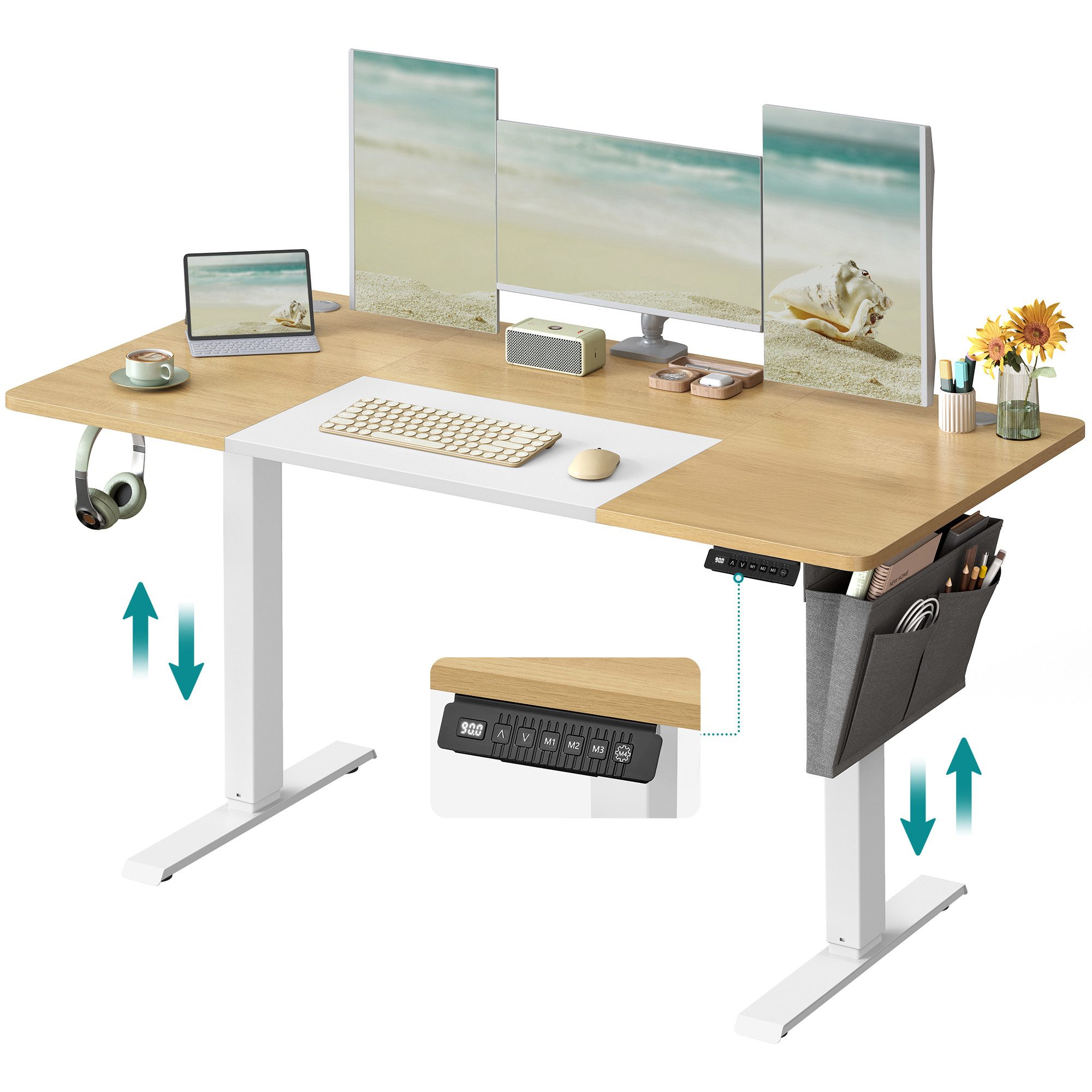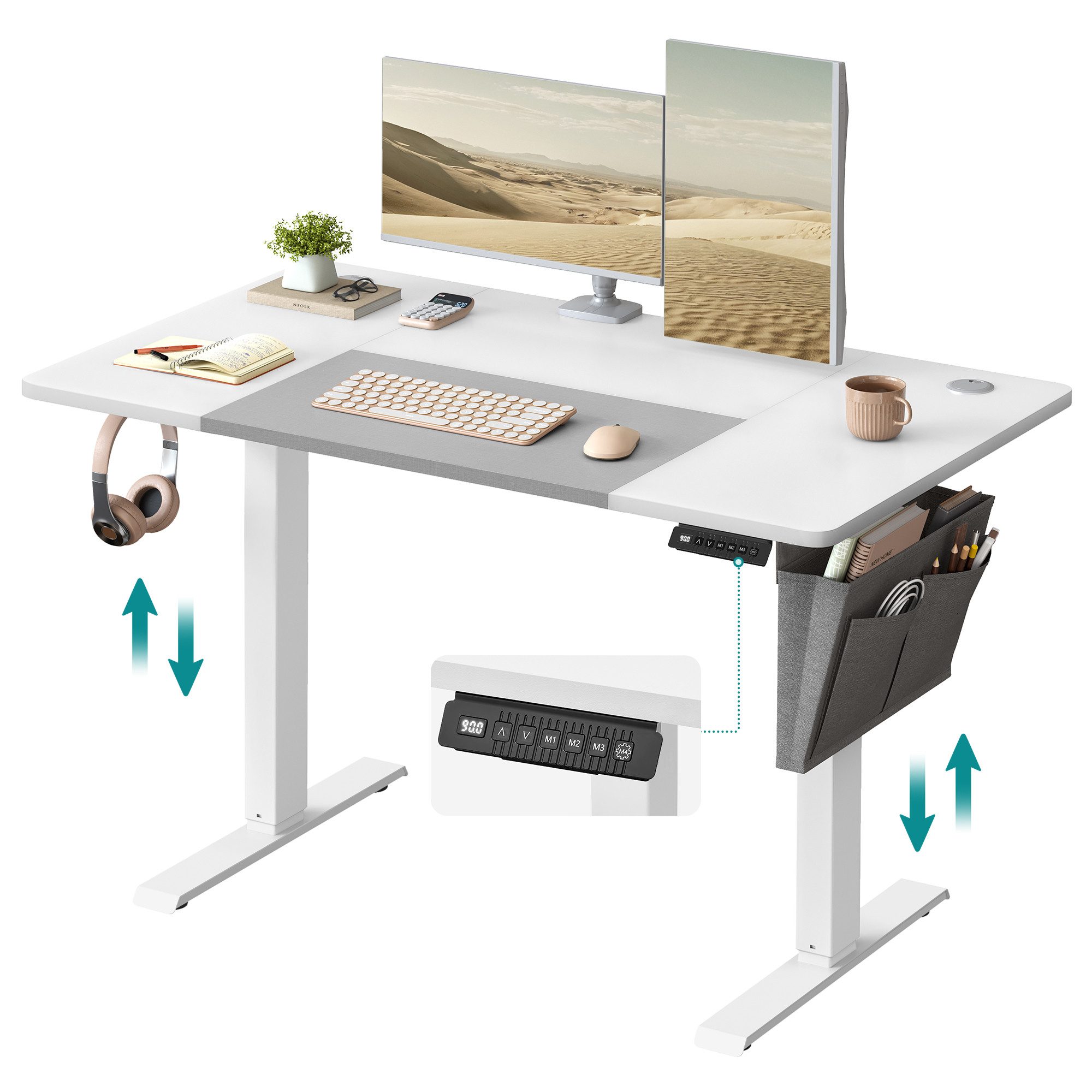 Dieser höhenverstellbare Schreibtisch ist Ihr perfekter Arbeitspartner! Die Höhe des Tisches ist von 72 bis 120 cm verstellbar, sodass Sie ganz nach Bedarf zwischen Sitzen und Stehen wechseln können, um die optimale Arbeitsposition zu finden. Die Memory-Funktion mit 4 Höhen ermöglicht es Ihnen, Ihre bevorzugte Höhe zu speichern. Der robuste Stahlrahmen und der hochwertige Motor sorgen für ein sanftes und schnelles Anheben und Absenken des Tisches, wobei der Geräuschpegel unter 48 dB liegt, damit Sie sich ungestört auf Ihre Arbeit konzentrieren können. 2 Kabellöcher, Organizer und Haken ermöglichen eine ordentliche Aufbewahrung Ihrer Arbeitsutensilien.