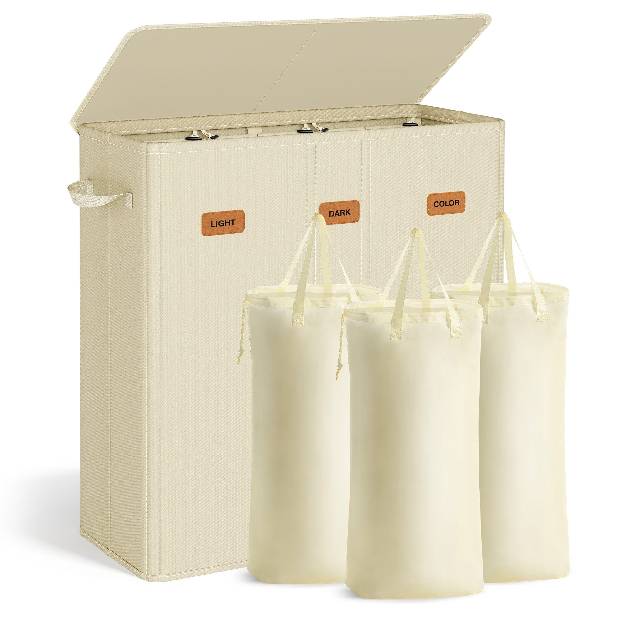 Dieser Wäschekorb überzeugt mit durchdachter Funktionalität und beeindruckender Kapazität. 3 separate Fächer und beschriftete Etiketten ermöglichen eine mühelose Vorsortierung, sodass Sie am Waschtag wertvolle Zeit sparen. Der herausnehmbare, maschinenwaschbare Innensack mit praktischem Kordelzug erleichtert den Transport und die Reinigung. Dank robustem Material und stabiler Konstruktion bleibt der Korb langlebig und formstabil. Der Deckel schützt Ihre Wäsche zuverlässig vor Staub und neugierigen Blicken. Bei Bedarf lässt sich der Korb einfach zusammenklappen und platzsparend verstauen – für mehr Ordnung und Komfort im Alltag.