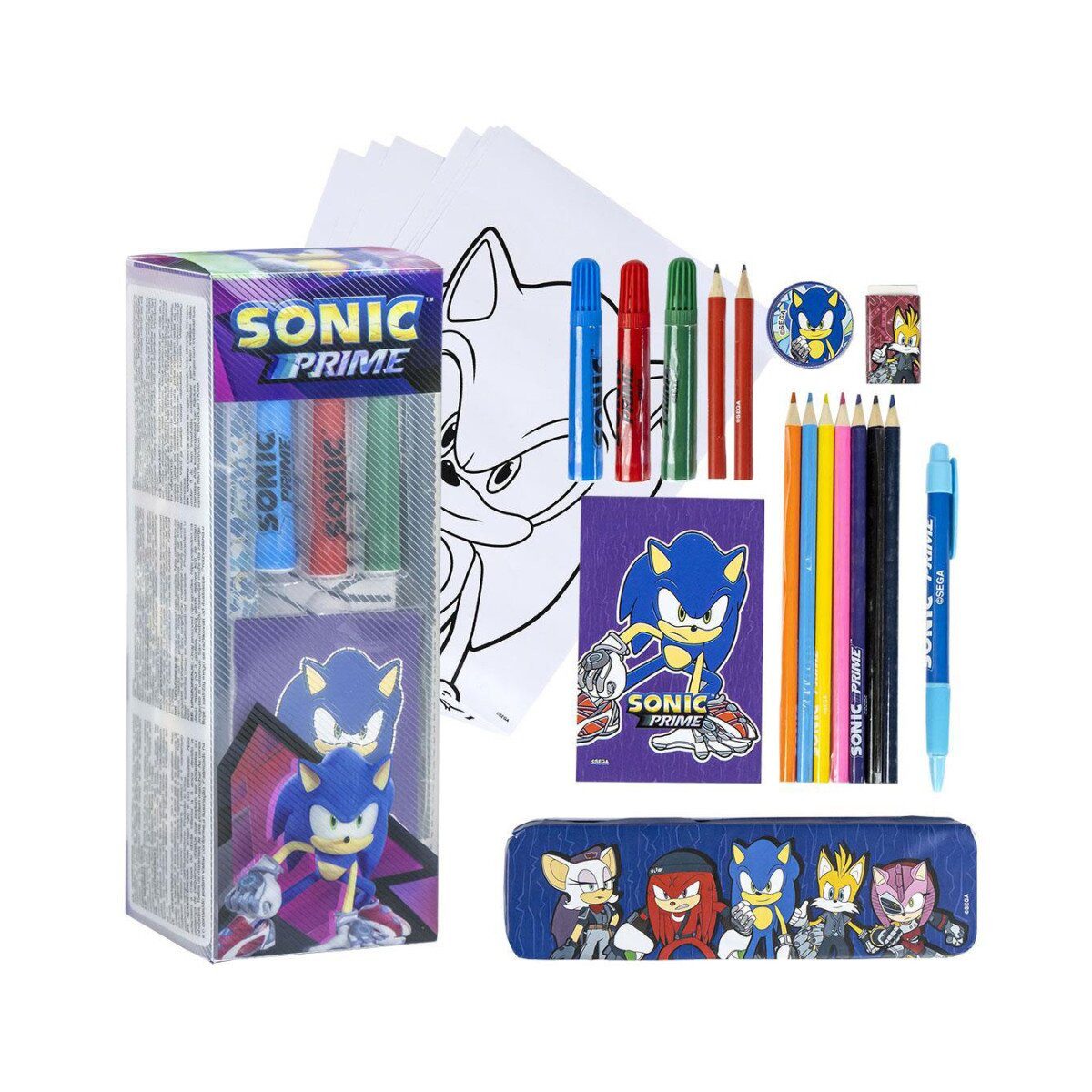 Dieses Set ist ideal für Schule, Zuhause oder unterwegs und fördert spielerisch die Feinmotorik und Kreativität kleiner Sonic-Fans. Ob Zeichnen, Schreiben oder Basteln – mit dem Sonic Schreibwarenset bist du bestens ausgerüstet!
