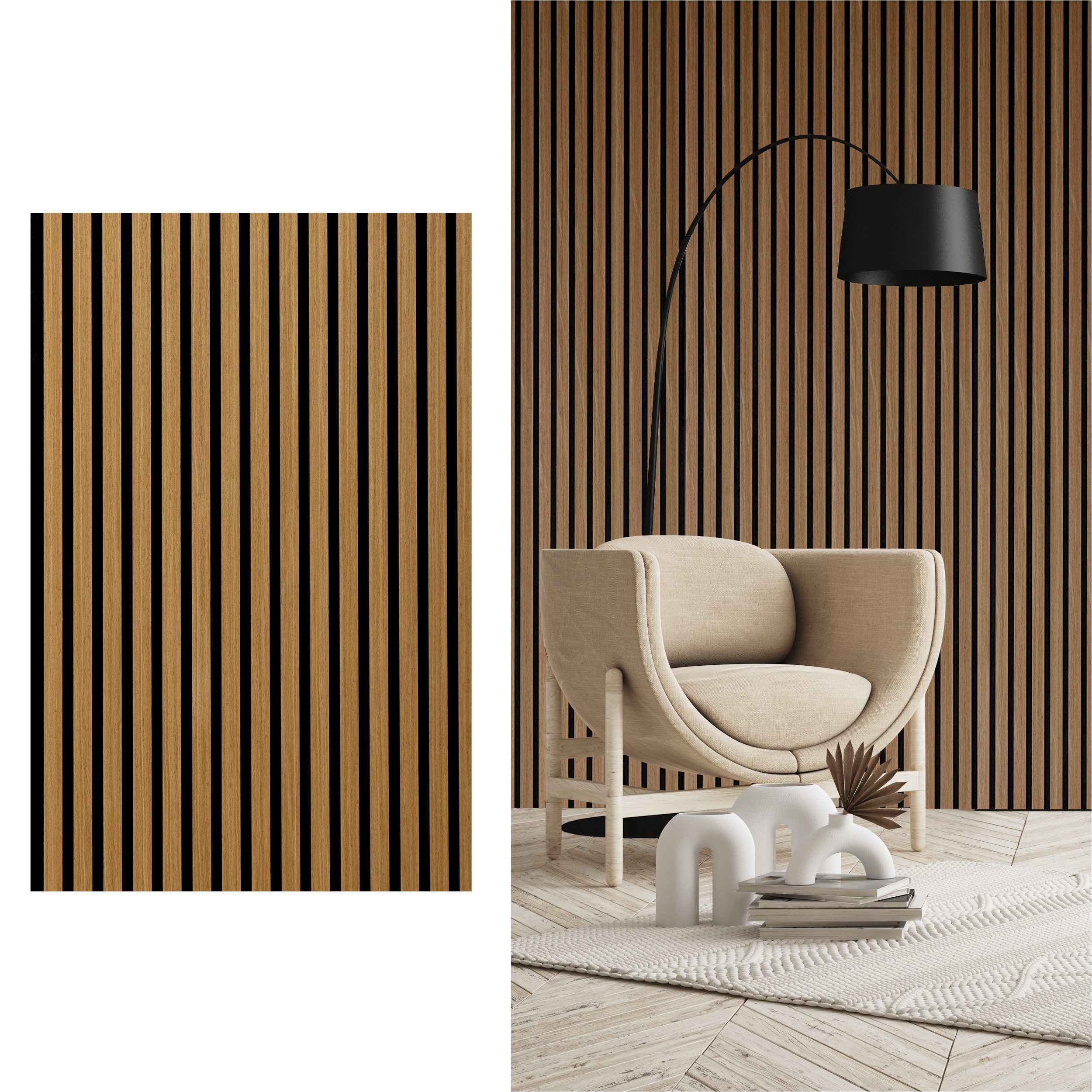 Dieses Akustikpaneel aus Eiche (Aufbauhöhe: ca. 18 mm) hilft Ihnen dabei, die Klangqualität eines Raumes zu verbessern und trägt durch seine attraktive Optik gleichzeitig zu einem wohnlichen Gesamtbild bei. Es lässt sich je nach Vorliebe entweder verschrauben oder festkleben. Das Paneel eignet sich zur Wand- und Deckenmontage gleichermaßen. Dabei veredelt die gebürstete Oberfläche des FSC-zertifizierten (C017145), zu 100 % recyclebaren Echtholzes das Interieur. Die Anbringung der Akustikpaneele ist kinderleicht. Sie können die Paneele mit handelsüblichem Montagekleber oder Schrauben mühelos an jeder Wand oder Decke befestigen – ganz ohne professionelle Hilfe. Die extrem schallabsorbierende Wirkung entsteht dadurch, dass die Holzlatten auf einen starken Filz-Akustikträger aufgebracht sind. Wer auf sehenswerte Weise Schall absorbieren möchte, um eine klare Geräuschkulisse zu schaffen, ist mit diesem Akustikpaneel aus Eiche bestens beraten. Entscheiden Sie sich für zeitlos-schlichte Ästhetik und beeindruckende Funktionalität! Egal ob im Eingangsbereich, Wohnzimmer, Büro, Schlafzimmer oder Aufnahmestudio – diese schallabsorbierenden Echtholz-Wandverkleidungen sind die perfekte Lösung, um den Raumklang zu verbessern und gleichzeitig ein stilvolles Ambiente zu schaffen. Beachten Sie, dass aufgrund der hochwertigen Echtholzoberfläche der Wandpaneele unterschiedliche Maserungen auftreten können. Diese natürlichen Variationen sind kein Grund zur Beanstandung, sondern vielmehr ein Qualitätsmerkmal, das die Einzigartigkeit jedes einzelnen Paneels unterstreicht. Vorteile der SONIDO Designpaneele: - Hochwertige Akustikpaneele mit schallabsorbierender Wirkung - FSC®-zertifiziertes Echtholzfurnier für natürliche Eleganz - Filz aus recyceltem Material für eine umweltfreundliche Raumgestaltung - Einfach zu montieren und zu pflegen Die SONIDO Akustik Wandpaneele sind in verschiedenen Holzdekors erhältlich und passen sich perfekt jedem Wohnstil an. Egal, ob in der Küche, im Wohnzimmer oder im Schlafzimmer – diese Designpaneele schaffen eine angenehme Atmosphäre und optimieren gleichzeitig die Klangqualität. Setzen Sie stilvolle Akzente und genießen Sie eine ruhige und entspannte Raumatmosphäre.