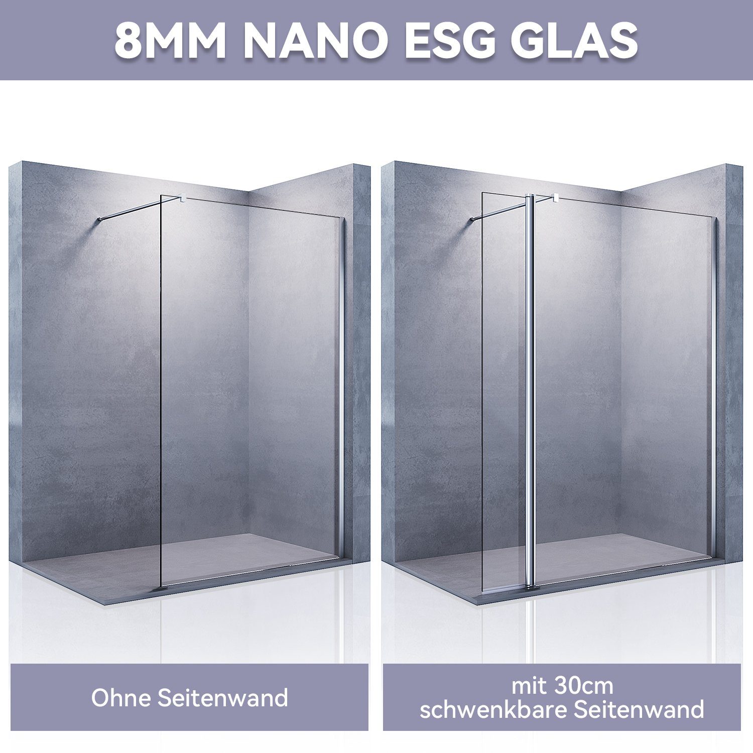 SONNI Walk in Duschwand mit 30cm schwenkbare Seitenwand Duschtrennwand 8mm Nano Glas Walk-In Dusche Duschkabine mit Haltestange