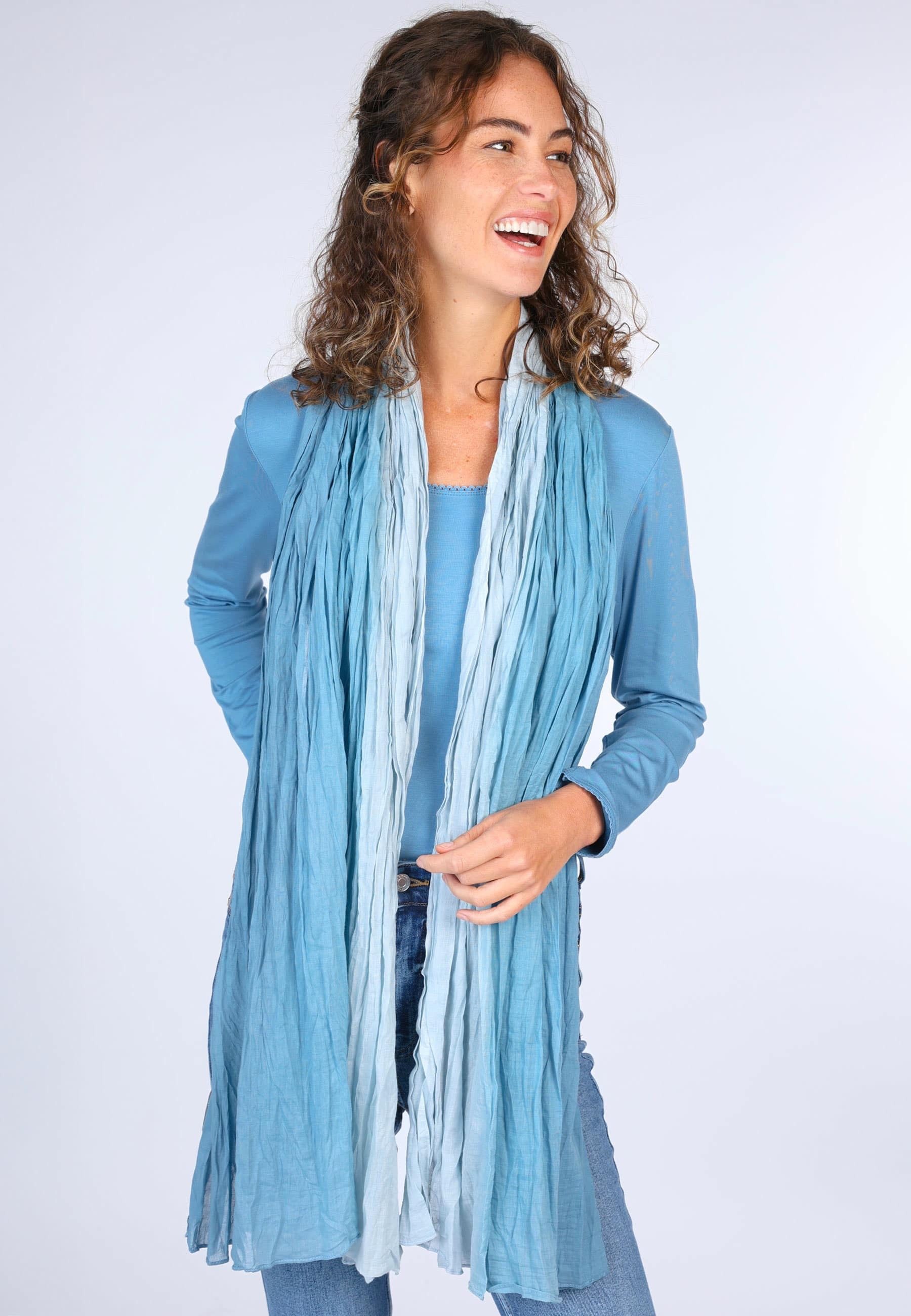 115cm x 180cm. Dank der weichen Baumwollqualität ist unser Schal atmungsaktiv und super angenehm zu tragen. Einfach und vielseitig zu kombinieren, mit seinen harmonischen Farbverlauf und wunderschönen Farben.