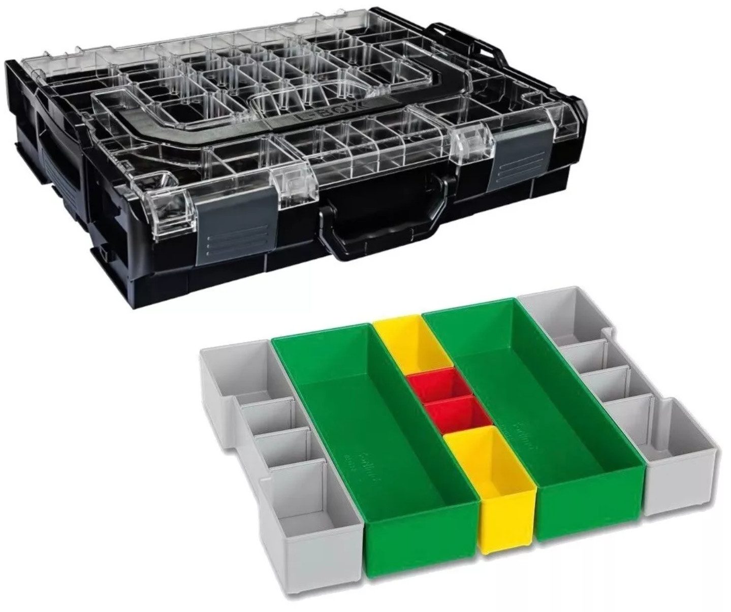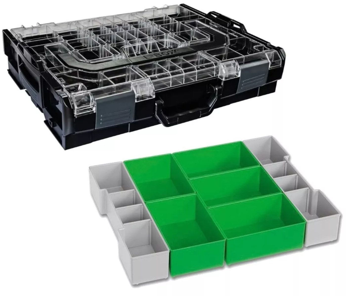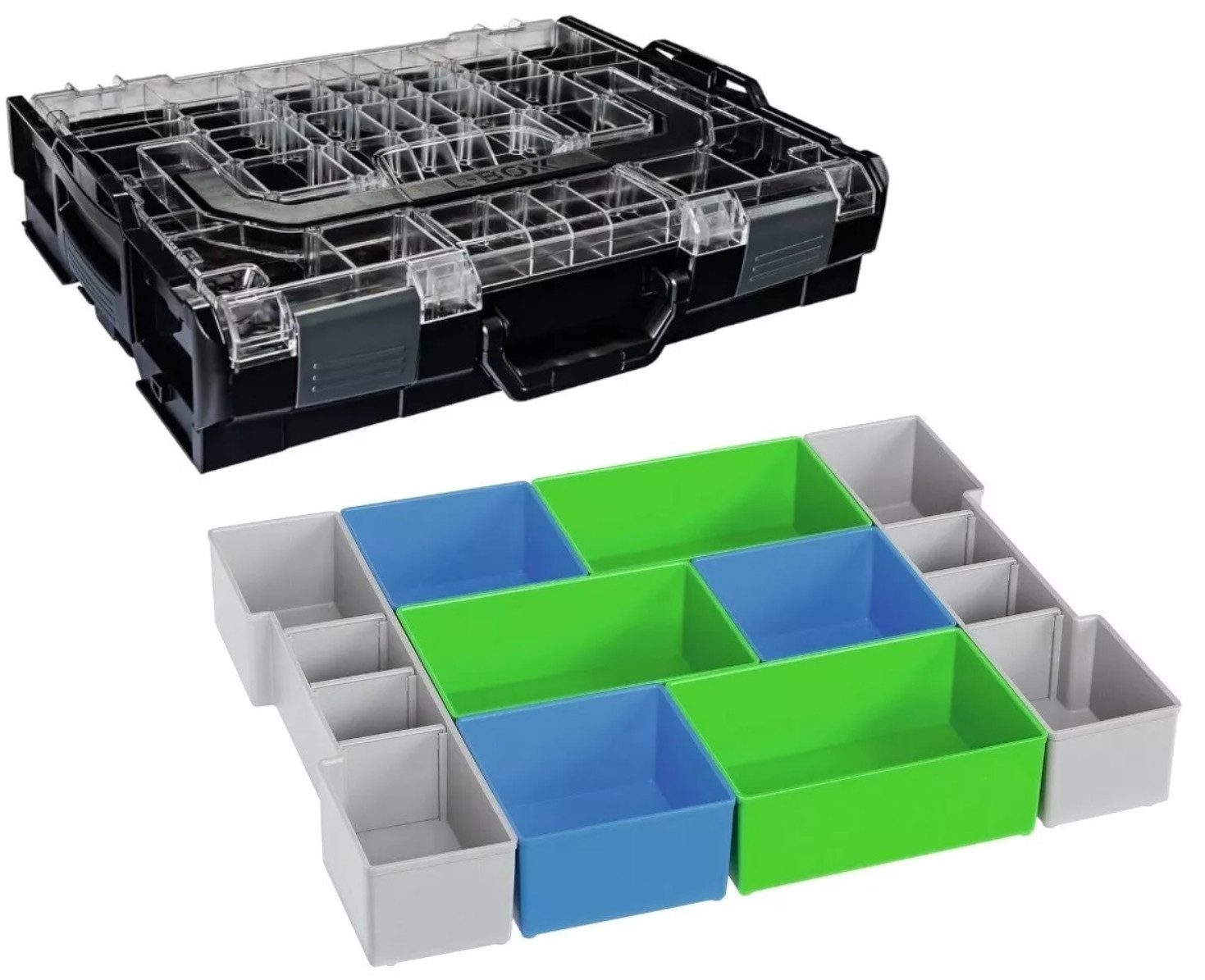 Lieferumfang: - 1 x Bosch Sortimo L-Boxx 102 anthrazit mit transparentem Deckel - 1 x Insetboxen-Set A3/B3/D3/BC3/CD3/F3/G3/H3 L-BOXX 102 in anthrazit mit transparentem Deckel für den täglichen Einsatz - einfach und bequem in der Verwendung. Erleichtert Ihren Arbeitsablauf durch den Einsatz auf der Baustelle, egal ob Zuhause oder unterwegs. Das zusätzliche Insetboxen-Set A3 bietet ein optimales räumliches Verhältnis für Sortierungen. Technische Daten L-Boxx 102 Deckel Transparent Artikelnummer 6100000362 GTIN/EAN 4014599125095 Bezeichnung L-BOXX 102 Deckel transparent Farbe transparent RAL 9017 Verkehrsschwarz RAL 7016 Anthrazitgrau Außenmaße (BxTxH) 445 x 358 x 118 mm Außenmaße (BxTxH) 445 x 358 x 118 mm Innenmaße (BxTxH): 378 x 313 x 61 mm Volumen 8.6 Liter Gewicht 2,5 kg Belastbarkeit Deckel 100 kg Beladungskapazität 25 kg Traglast Frontgriff 25 kg Traglast Tragegriff 40 kg Spritzwassergeschützt Ja Temperaturbereich in ℃ -20℃ bis +80℃ Material L-BOXX Deckel:Polycarbonat L-BOXX/Tragegriffe/Griffschale: Acrylnitril-Butadien-Styrol Koppelhebel/Verschlussschnapper: Polyamid Kompatibel mit L-BOXX System/ProClick Tool Bag M/ProClick Soft Bag M L-BOXX 102 transparent: Genauso flexibel wie ihre großen Brüder ist auch die L-BOXX 102 extrem robust und belastbar. Zugleich bietet die L-BOXX 102 alle Ausstattungsmerkmale der bewährten L-BOXX-Reihe. Die L-BOXX verfügt in jeder Размер über den robusten Klickmechanismus und die Tragegriffe, die bis zu 25 kg Beladung einzeln und 40 kg im Verbund ermöglichen. Der transparente Deckel der L-BOXX 102 wurde so konstruiert, dass die Insetboxen in jeder Kombination und die Kleinteileeinsätze mit 5 und 8 Mulden bündig mit dem Deckel abschließen. Somit lassen sich Kleinteile, wie z.B. Schrauben, Nieten oder Dübel vermischungsfrei transportieren. Insetboxen: 1. A3 B378*L313*H65mm Rot/Grau 2. B3 B378*L313*H65mm Gelb/Grau 3. D3 B378*L313*H65mm Grün/Grau 4. F3 B378*L313*H65mm Orange/Gelb/Grau 5. G3 B378*L313*H65mm Dunkelgrün/Gelb/Rot/Grau 6. H3 B378*L313*H65mm Grün/Orange/Gelb/Rot/Blau/Grau 7. BC3 B378*L313*H65mm Blau/Gelb/Grau 8. CD3 B378*L313*H65mm Blau/Grün/Grau 9. 5 Mulden B378*L313*H65mm 10. Mini box Transparent B378*L313*H65mm Transparent 11. Mini box Opak B378*L313*H65mm OPAK