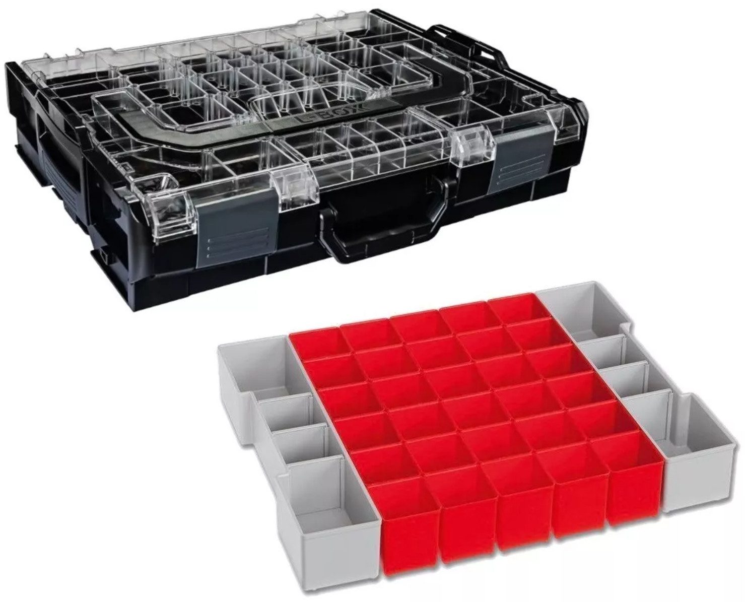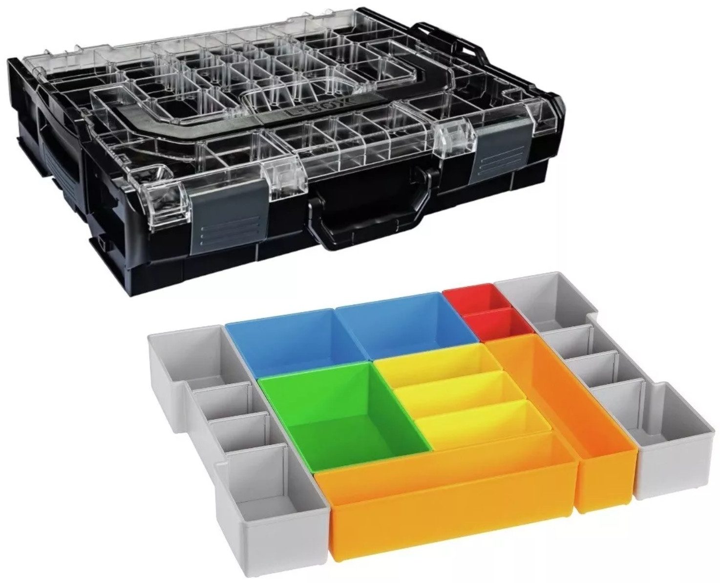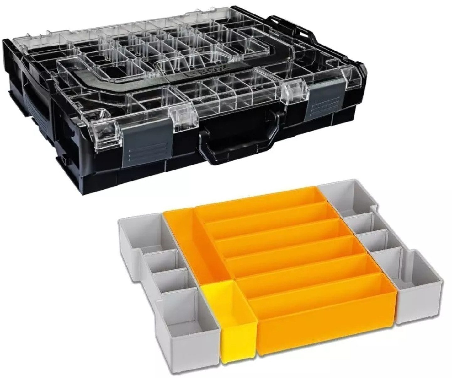 Lieferumfang: - 1 x Bosch Sortimo L-Boxx 102 anthrazit mit transparentem Deckel - 1 x Insetboxen-Set A3/B3/D3/BC3/CD3/F3/G3/H3 L-BOXX 102 in anthrazit mit transparentem Deckel für den täglichen Einsatz - einfach und bequem in der Verwendung. Erleichtert Ihren Arbeitsablauf durch den Einsatz auf der Baustelle, egal ob Zuhause oder unterwegs. Das zusätzliche Insetboxen-Set A3 bietet ein optimales räumliches Verhältnis für Sortierungen. Technische Daten L-Boxx 102 Deckel Transparent Artikelnummer 6100000362 GTIN/EAN 4014599125095 Bezeichnung L-BOXX 102 Deckel transparent Farbe transparent RAL 9017 Verkehrsschwarz RAL 7016 Anthrazitgrau Außenmaße (BxTxH) 445 x 358 x 118 mm Außenmaße (BxTxH) 445 x 358 x 118 mm Innenmaße (BxTxH): 378 x 313 x 61 mm Volumen 8.6 Liter Gewicht 2,5 kg Belastbarkeit Deckel 100 kg Beladungskapazität 25 kg Traglast Frontgriff 25 kg Traglast Tragegriff 40 kg Spritzwassergeschützt Ja Temperaturbereich in ℃ -20℃ bis +80℃ Material L-BOXX Deckel:Polycarbonat L-BOXX/Tragegriffe/Griffschale: Acrylnitril-Butadien-Styrol Koppelhebel/Verschlussschnapper: Polyamid Kompatibel mit L-BOXX System/ProClick Tool Bag M/ProClick Soft Bag M L-BOXX 102 transparent: Genauso flexibel wie ihre großen Brüder ist auch die L-BOXX 102 extrem robust und belastbar. Zugleich bietet die L-BOXX 102 alle Ausstattungsmerkmale der bewährten L-BOXX-Reihe. Die L-BOXX verfügt in jeder Размер über den robusten Klickmechanismus und die Tragegriffe, die bis zu 25 kg Beladung einzeln und 40 kg im Verbund ermöglichen. Der transparente Deckel der L-BOXX 102 wurde so konstruiert, dass die Insetboxen in jeder Kombination und die Kleinteileeinsätze mit 5 und 8 Mulden bündig mit dem Deckel abschließen. Somit lassen sich Kleinteile, wie z.B. Schrauben, Nieten oder Dübel vermischungsfrei transportieren. Insetboxen: 1. A3 B378*L313*H65mm Rot/Grau 2. B3 B378*L313*H65mm Gelb/Grau 3. D3 B378*L313*H65mm Grün/Grau 4. F3 B378*L313*H65mm Orange/Gelb/Grau 5. G3 B378*L313*H65mm Dunkelgrün/Gelb/Rot/Grau 6. H3 B378*L313*H65mm Grün/Orange/Gelb/Rot/Blau/Grau 7. BC3 B378*L313*H65mm Blau/Gelb/Grau 8. CD3 B378*L313*H65mm Blau/Grün/Grau 9. 5 Mulden B378*L313*H65mm 10. Mini box Transparent B378*L313*H65mm Transparent 11. Mini box Opak B378*L313*H65mm OPAK