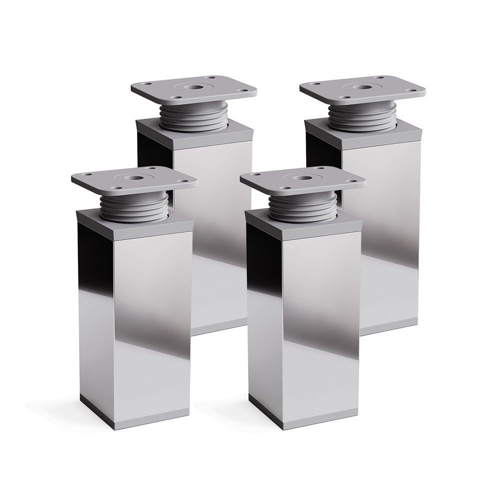 Lieferumfang | 4x sossai® Möbelfüße 60mm in Chrom, 16x Holzschrauben (PZ2 4/16mm), Montageanleitung |