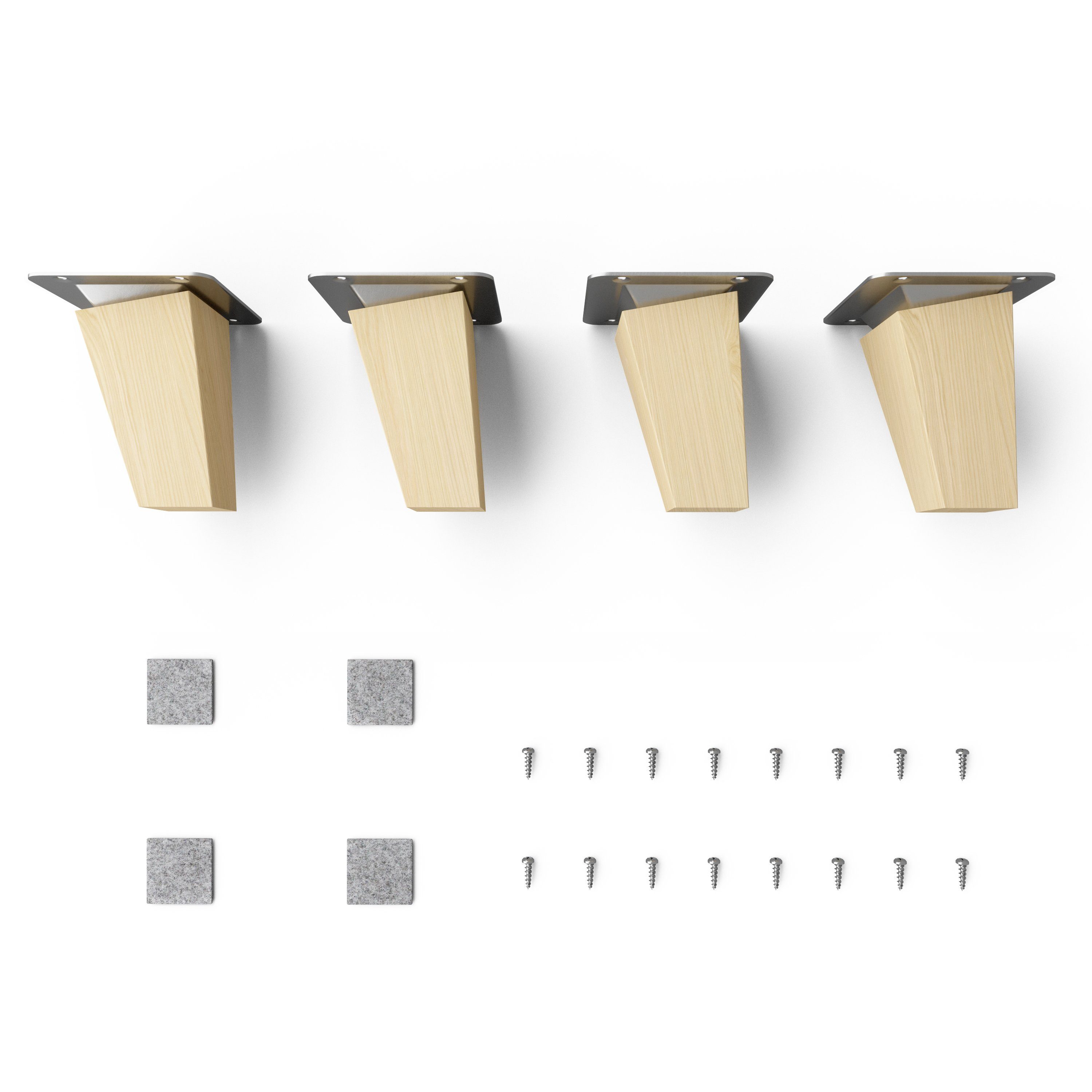 Lieferumfang4x Holz-Möbelfüße Buche 8cm Natur (unbehandelt) mit Montageplatten + Schrauben und Filzgleiter