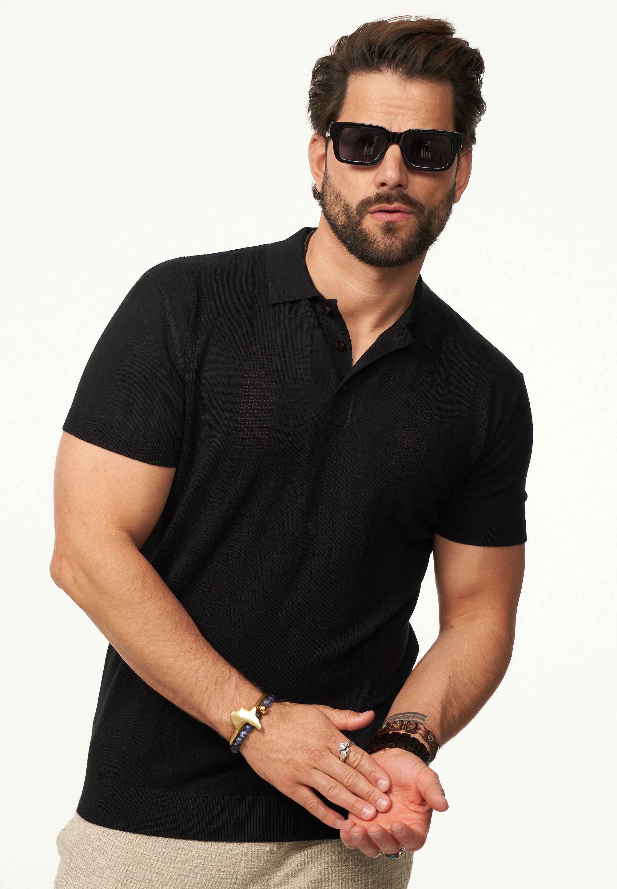 Modernes Kurzarm Strick-Poloshirt von SOULSTAR mit Knopfleiste