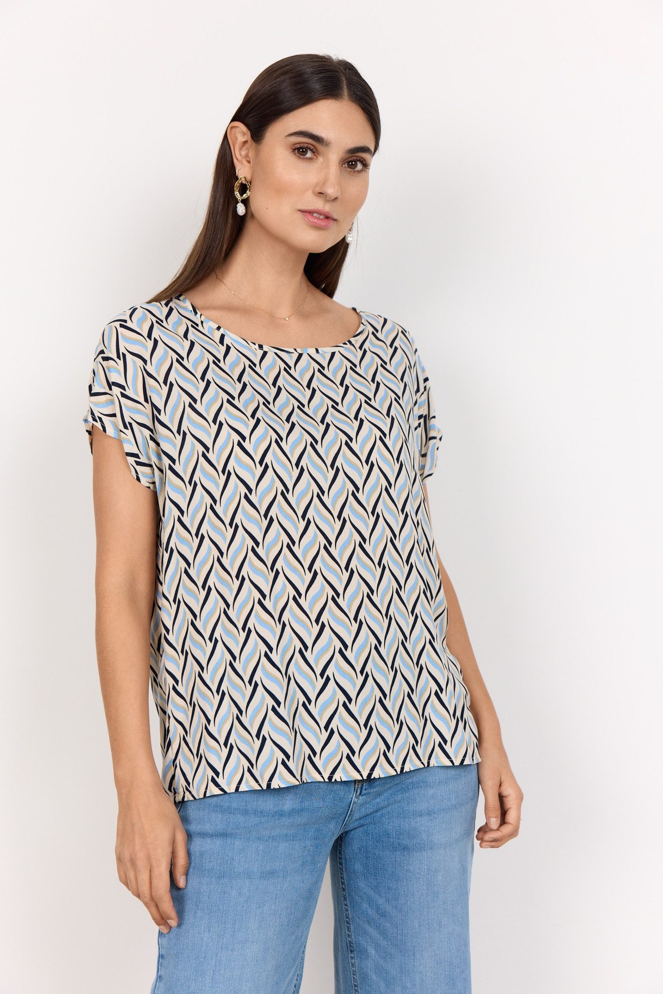 Mit der Kurzarmbluse von soyaconcept stellst du im Handumdrehen ein neues Outfit zusammen. Sie wirkt mit dem Aufdruck sowohl locker als auch frisch. Diese Bluse hat einen Rundhalsausschnitt und ist normal sowie basic geschnitten, sodass dein Oberkörper dezent in Szene gesetzt wird.