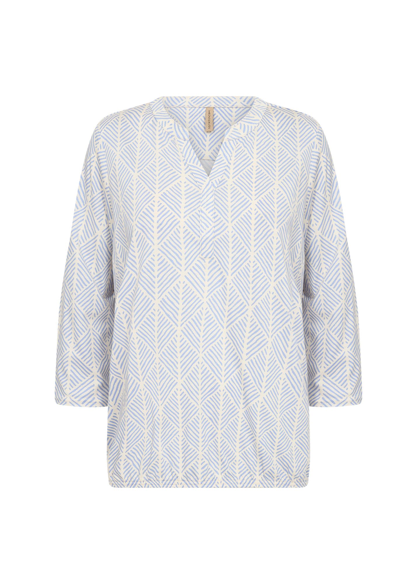 Mit der Schlupfbluse von soyaconcept lassen sich schnell neue Styles kombinieren. Mit dem Aufdruck sieht sie lässig und peppig aus. Diese Bluse hat einen V-Ausschnitt und ist normal.