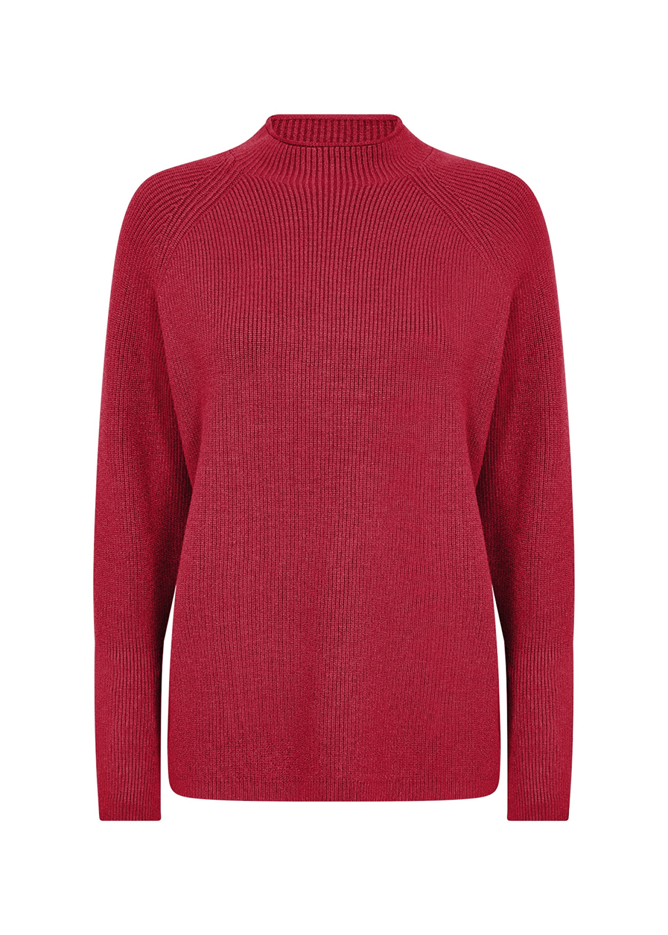 Der Rippstrickstoff aus Viskosemischung hält dich warm und ist auch sehr bequem. Lege den Pullover zum Trocknen an der Luft auf den Wäscheständer, statt ihn aufzuhängen. So behält er seine Form und verzieht sich nicht.
