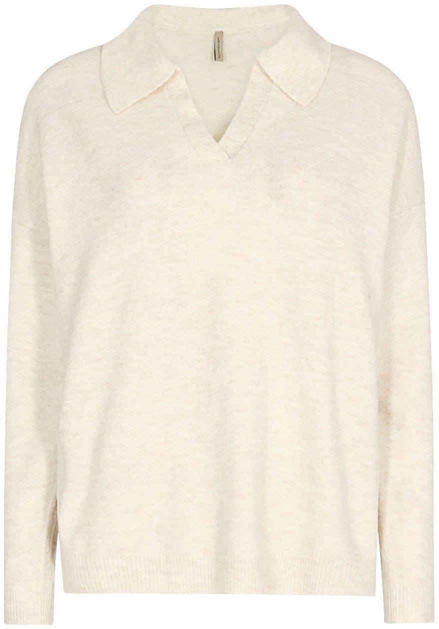 Gesucht und gefunden: Schau dir den Strickpullover von soyaconcept mal genauer an. Dieser Pullover hat einen V-Ausschnitt und ist basic geschnitten und umspielt deinen Oberkörper locker.